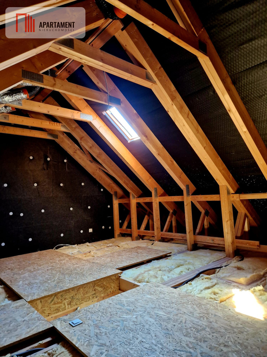 Istnieje możliwość adaptacji poddasza. Do domu przynależą 2 miejsca postojowe. Standard wykończenia: drzwi antywłamaniowe, okna trzyszybowe, elewacja - tynk silikonowy. Ogrzewanie domu i wody użytkowej pompą ciepła.