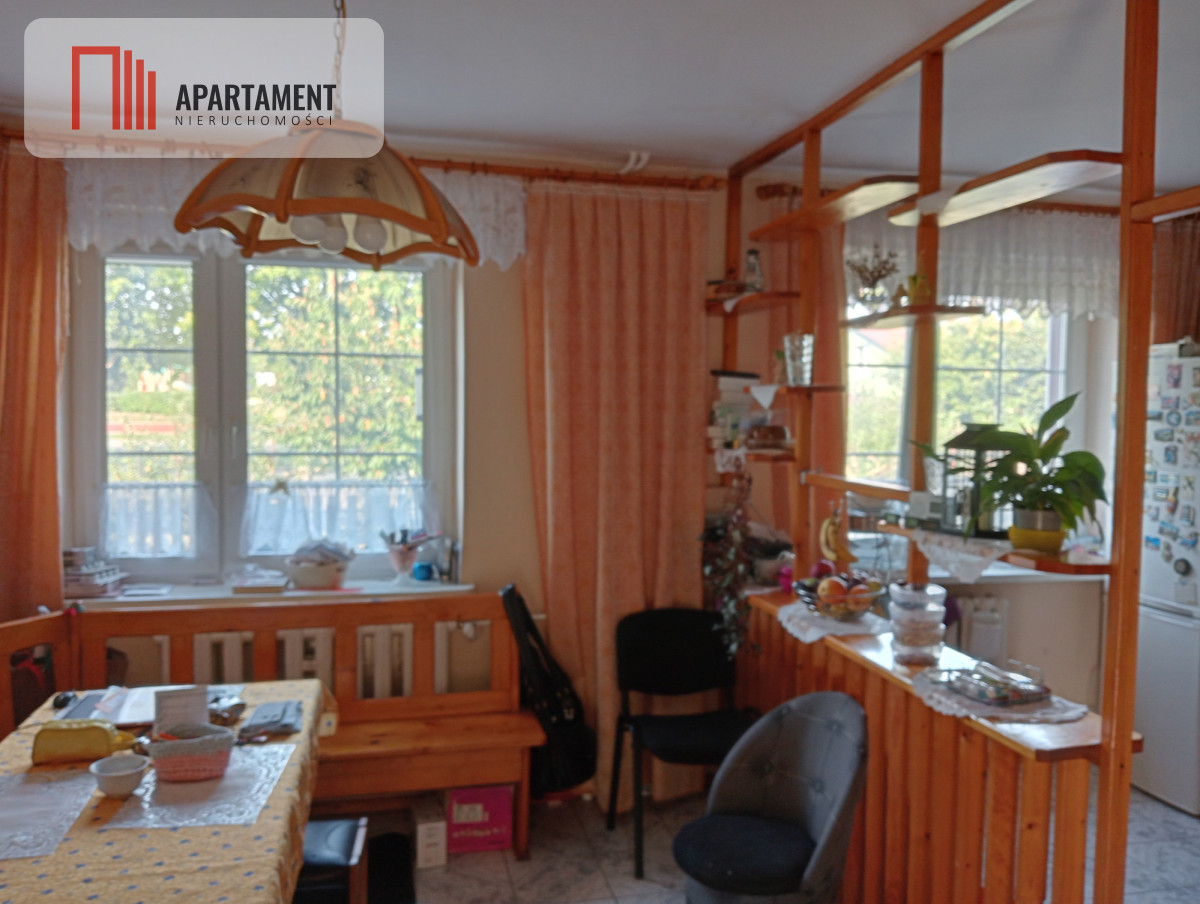 - parter składa się z werandy, przedpokoju, kuchni z jadalnią, pokoju oraz salonu z wyjściem na taras. Wydzielona jest część mieszkalna pod wynajem z osobnym wejściem.