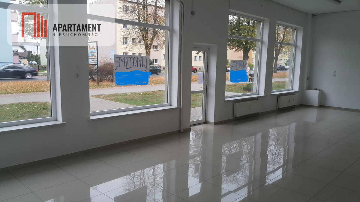 usytuowany na parterze, z dużą szklaną witryną, wejście bezpośrednio z ulicy