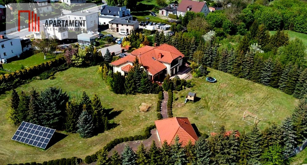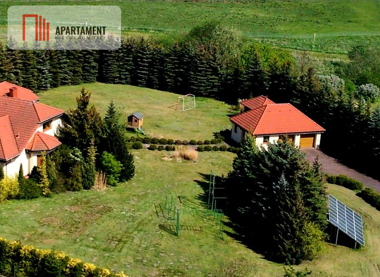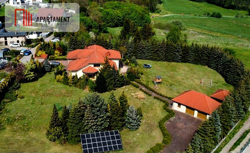 Dom o pow. 500 m2 położony w Chojnicach, na działkach o łącznej powierzchni 5783 m2. Na działce znajduje się drugi budynek, o pow. 100 m2, z dwoma garażami.