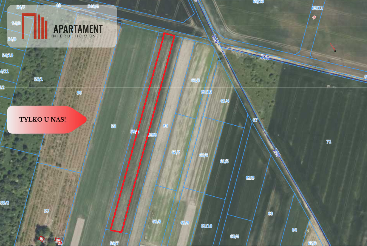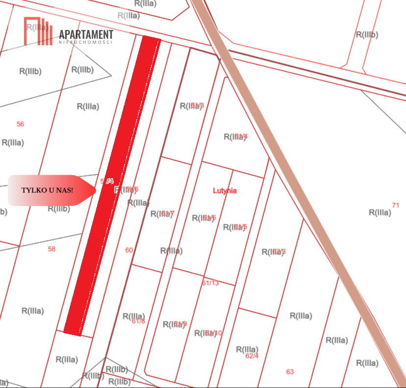 Na sprzedaż działka nr 59/5 o powierzchni 0,4033 ha oznaczona w MPZP jako rolna w miejscowości Lutynia, gmina Miękinia, powiat średzki. Klasa gruntu III a. Przybliżone wymiary działki 14,80 m x 280 m. Ok 70 -100 m od działki znajduje się wodociąg oraz teren przeznaczony w MPZP pod zabudowę mieszkaniowo - usługową.