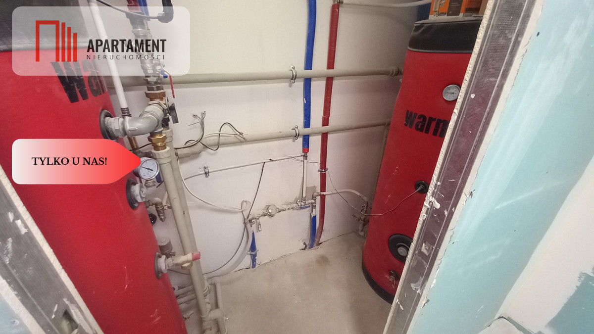 Doprowadzone nowe instalacje elektryczne, wod-kan oraz C.O. Na poziomie parteru ogrzewanie podłogowe, osobna kotłownia z buforem 300l oraz bojlerem 300l z długą wężownicą. Na piętrze pionowe grzejniki w kolorze czarny mat. Ogrzewanie napędza nowoczesna pompa ciepła 12kw klasa energetyczna a++