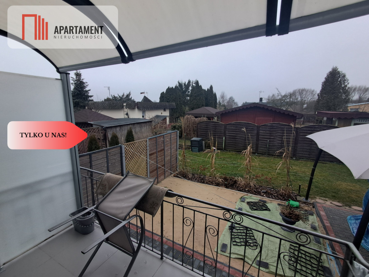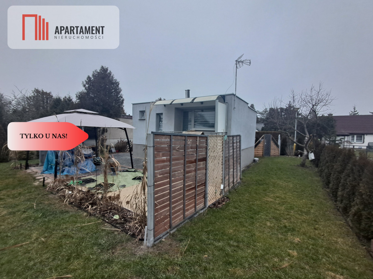 Na terenie działki znajduje się zadbany murowany, ocieplony i funkcjonalny domek wielkości 35 mkw. w którego skład wchodzą dwa pokoje, kuchnia, łazienka z prysznicem oraz przedpokój, jak i zadaszony taras na który wyjdziemy drzwiami balkonowymi z jednego z pokoi.