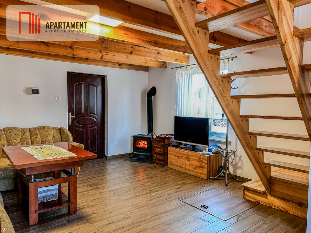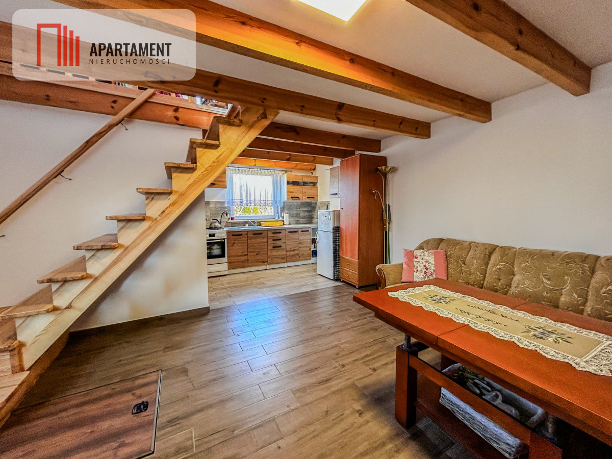 - Parter: salon z aneksem kuchennym, łazienka około 4 m2 z prysznicem.
