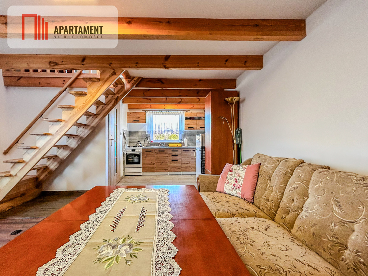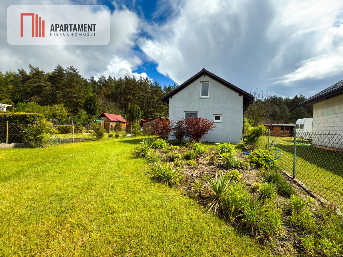 Domek - wybudowany w 2022r., w pełni umeblowany, murowany, ocieplony i częściowo podpiwniczony, gotowy do użytkowania o każdej porze roku, z dwoma kondygnacjami o powierzchni 35 m2 każda.