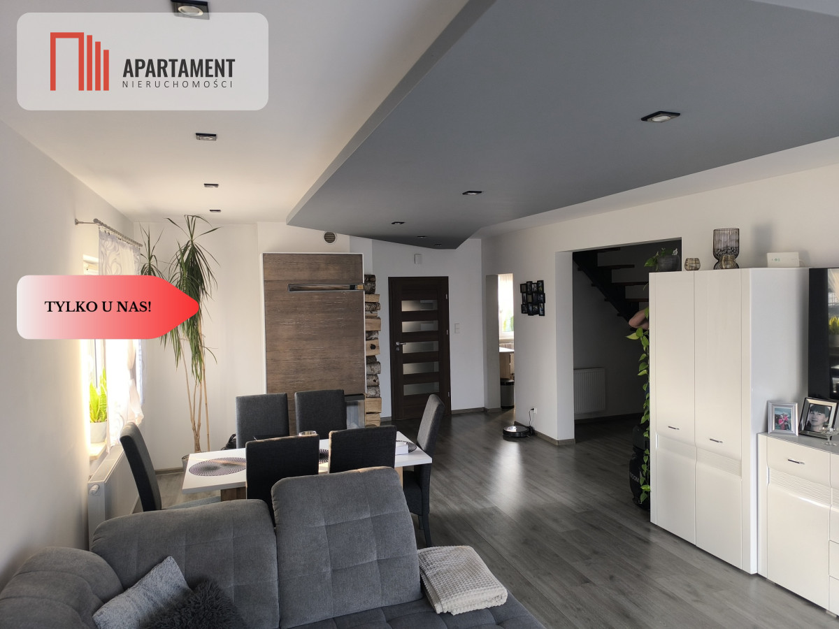 Dom jest bardzo przestronny, słoneczny i komfortowy - posiada wiatrołap, kuchnię z meblami pod zabudowę i wyposażeniem AGD, przestronny salon z kominkiem na drewno, aby nadać miłą atmosferę w trakcie wypoczynku z wyjściem na duży taras i ogród ,sypialnię, pokój dziecięcy oraz łazienkę z toaletą. Poddasze domu ok 70m2 pozostaje do własnej aranżacji. Dom ogrzewany piecem na eko groszek z podajnikiem 5 klasa, ogrzewanie podłogowe plus grzejniki.