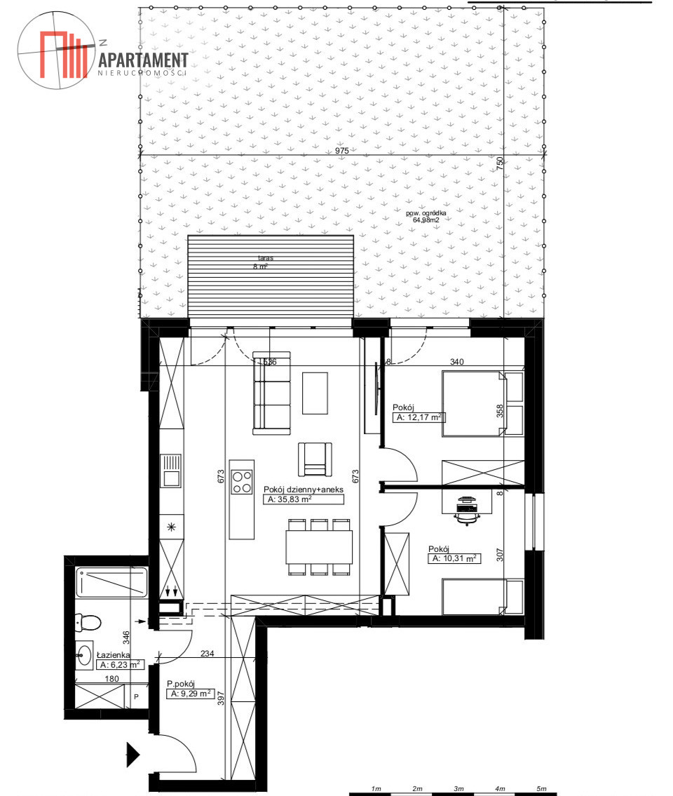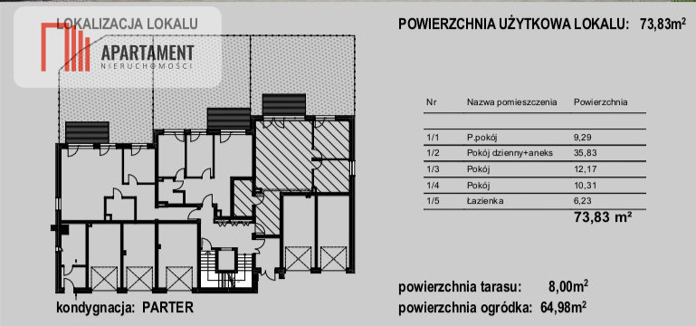 Dodatkowym atutem jest przestronny ogródek (64,98 m²), który stanowi doskonałą przestrzeń do wypoczynku i rekreacji.