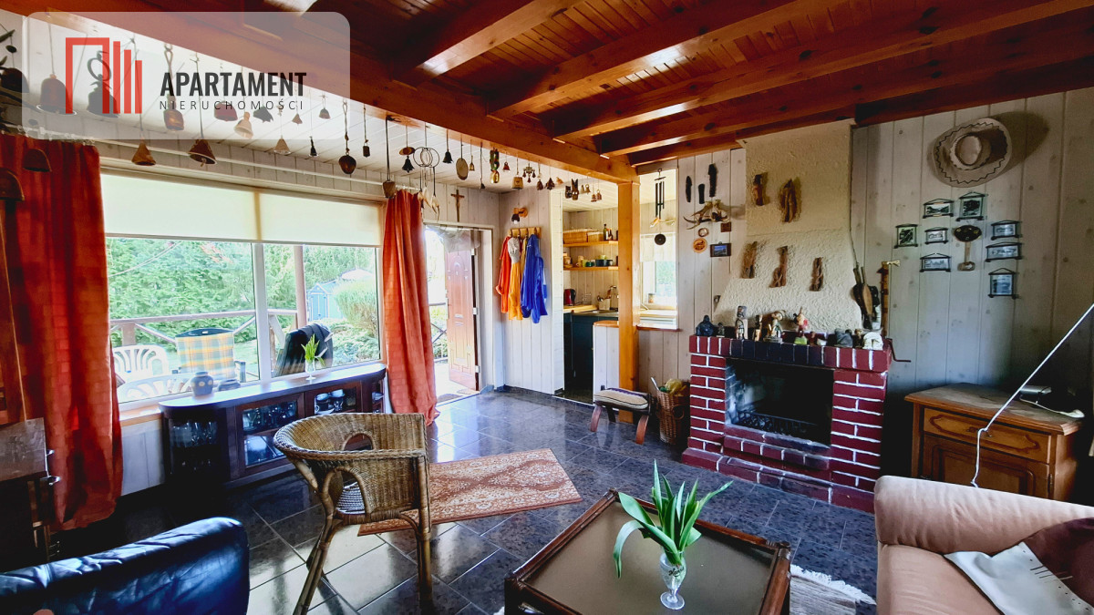 • W salonie sprawny kominek - nadaje klimat i przedłuża sezon działkowy