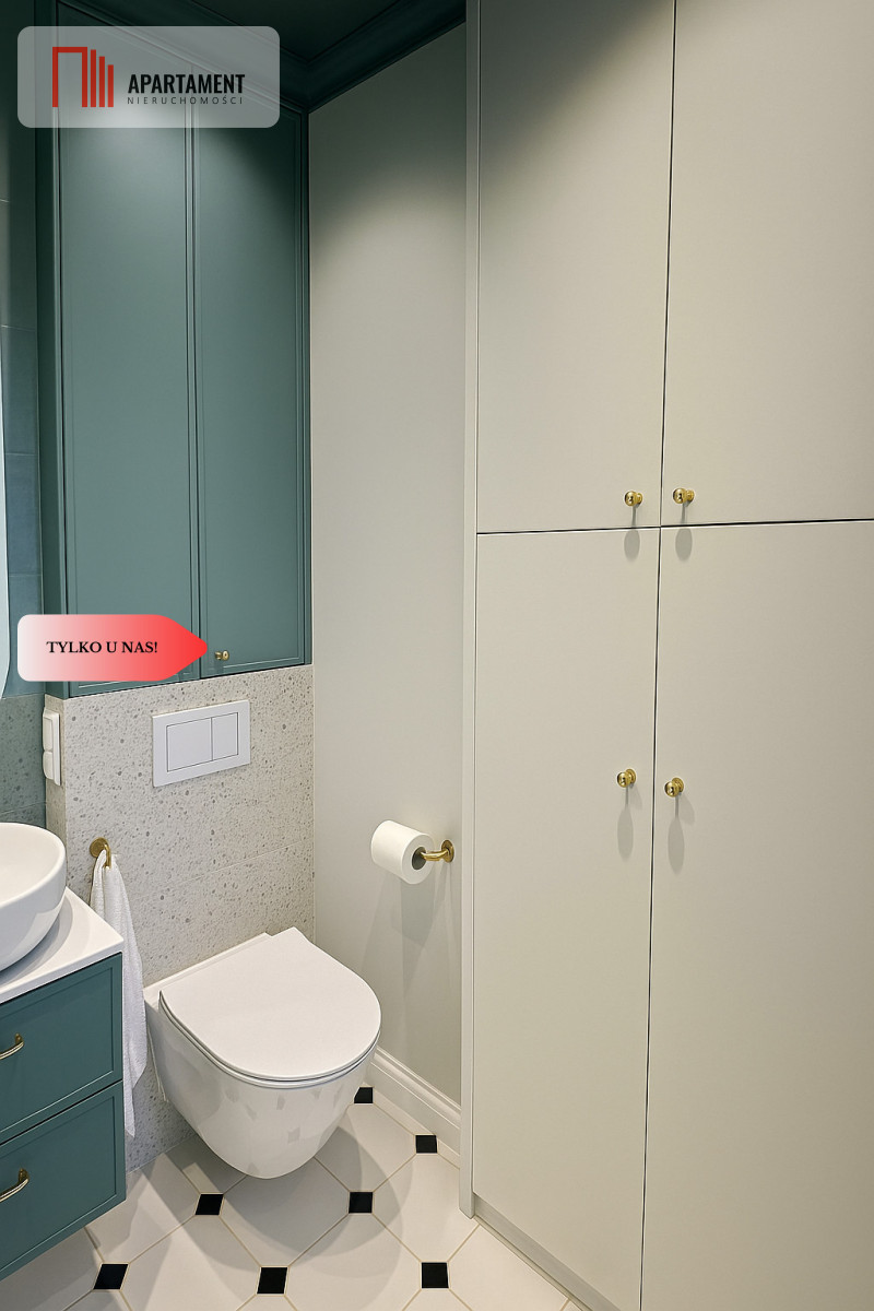 Mieszkanie jest w pełni umeblowane i wyposażone w nowoczesny sprzęt AGD w tym ekspres do kawy, zmywarkę, mikrofalówkę, piekarnik, płytę indukcyjną, lodówkę i okap. Do łóżka sypialnianego będzie kupiony nowy materac. Dla zapewnienia komfortu mieszkanie posiada klimatyzację, która latem wprowadza chłód.