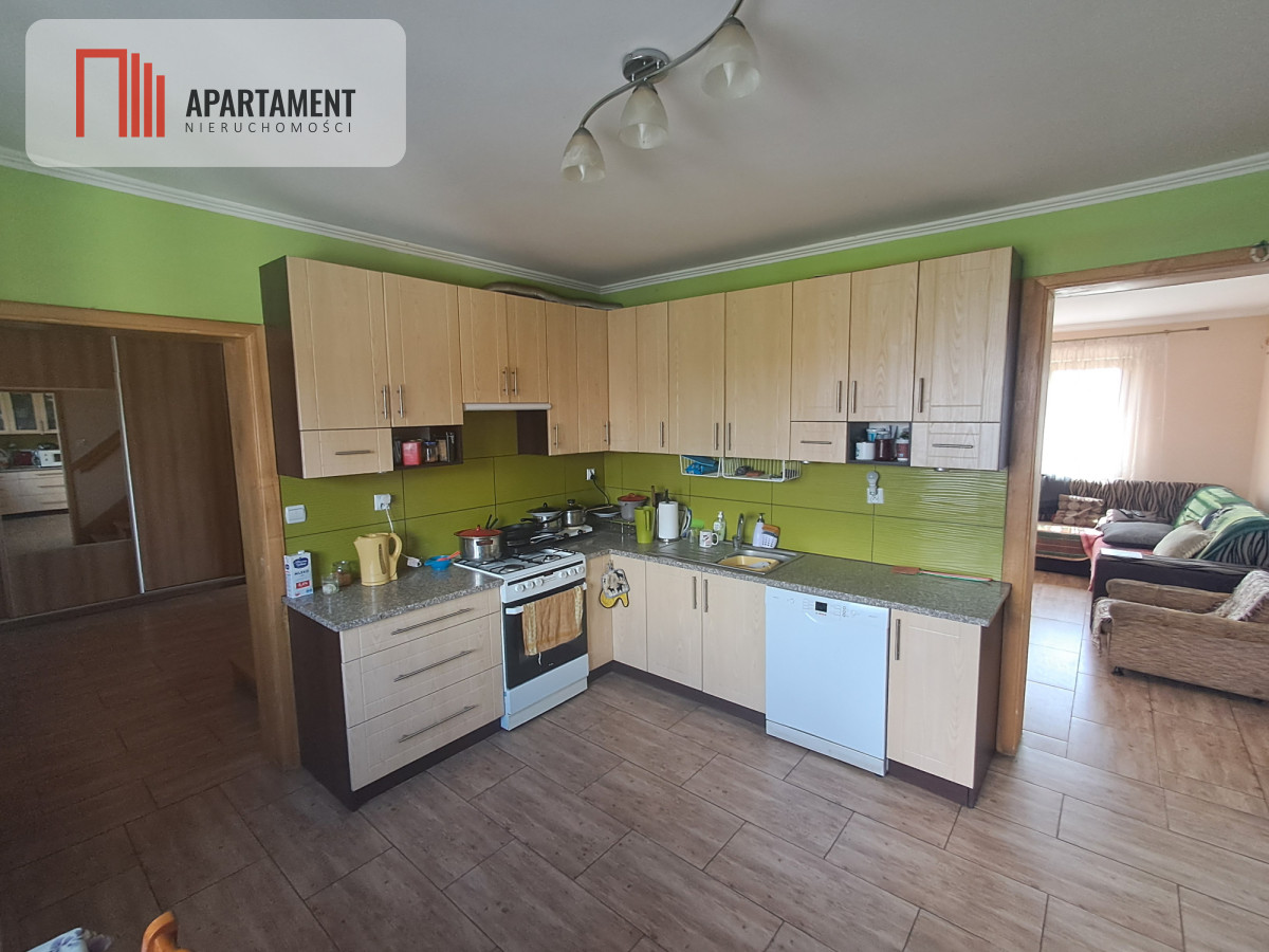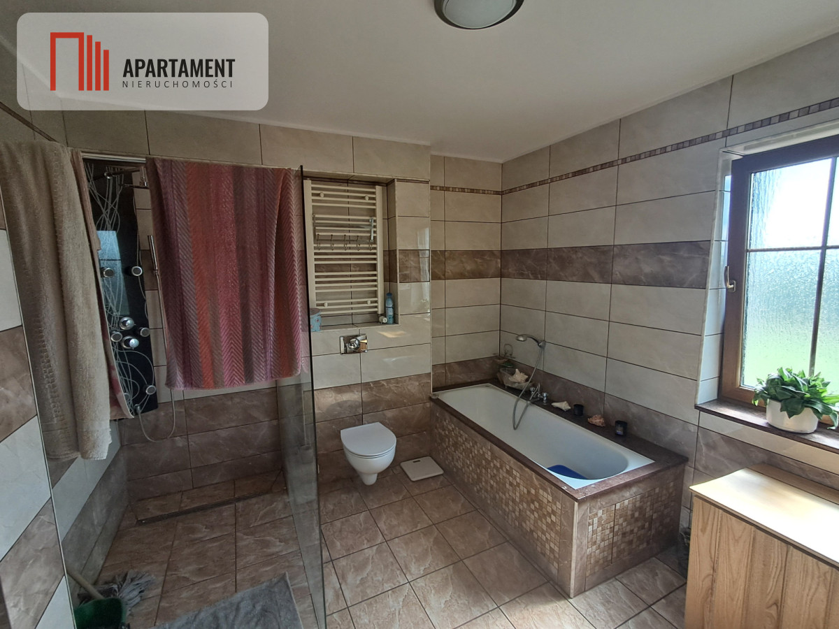 Dom mieszkalny dwukondygnacyjny o powierzchni 220 mkw. plus piwnica oraz garaż dwustanowiskowy (43 mkw.).