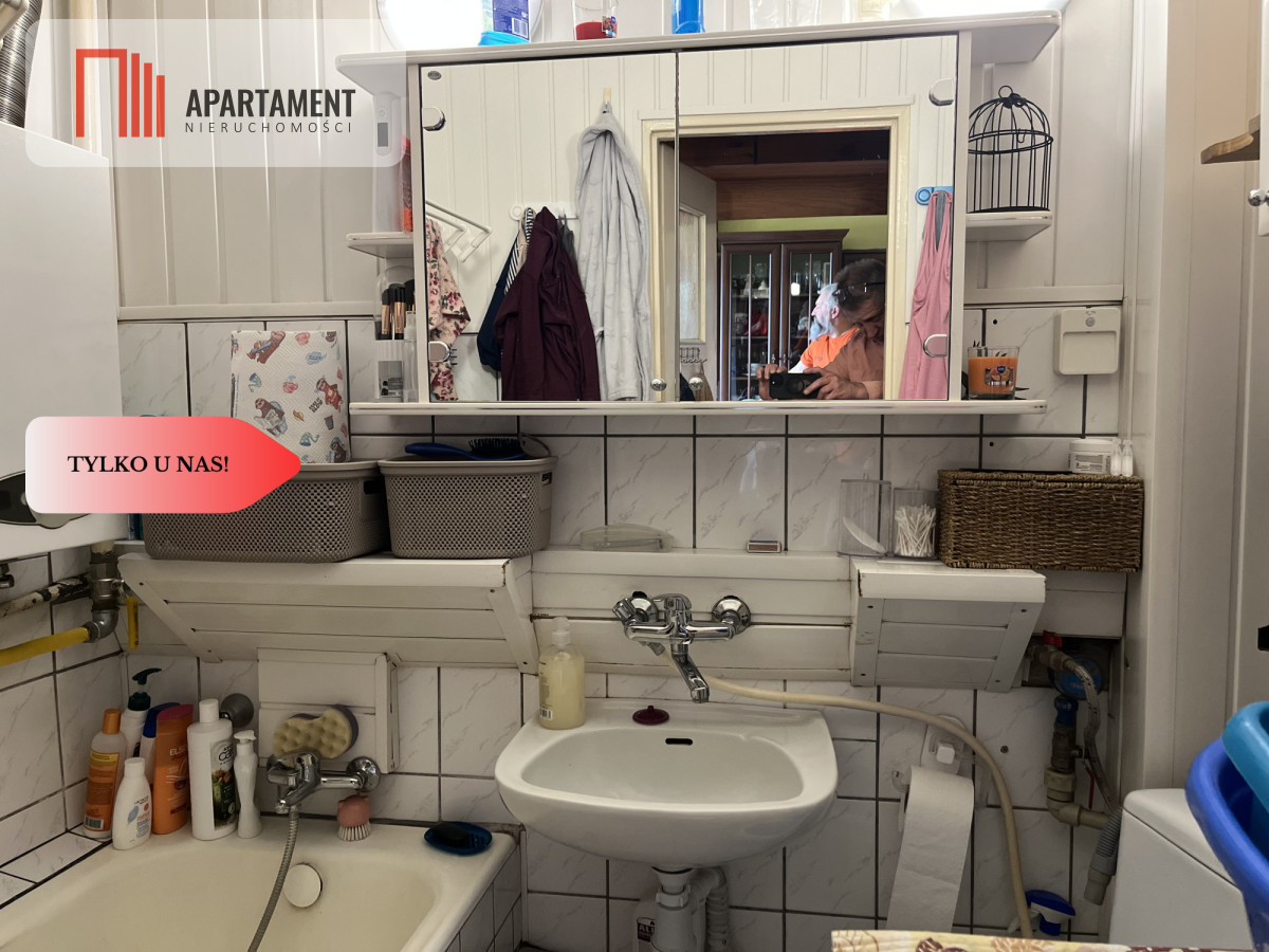 Łazienka z wanną wymaga remontu pod swoje oczekiwania, ale to jest w każdej łazience na rynku wtórnym, dopasowujemy ją pod własne wymogi i gust.