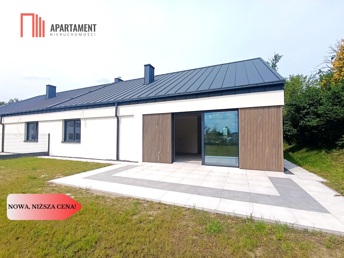 Mamy coś wyjątkowego: nowy parterowy bliźniak o pow. 145 m² (sprzedawany segment) na dużej, zadbanej działce - w spokojnej okolicy, otoczonej jeziorami i zielenią.