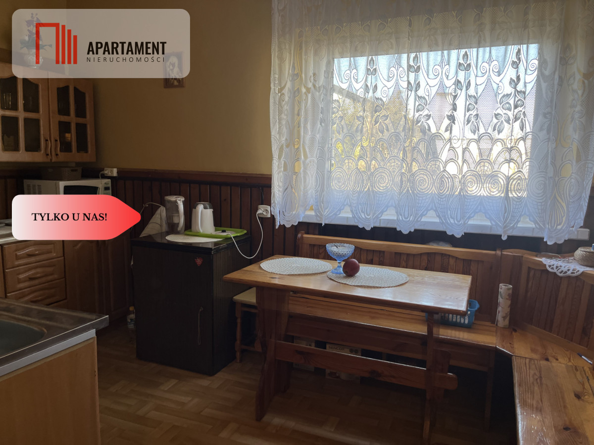 Wybudowany w latach 70', jest to budynek o zabudowie bliźniaczej z piętrem użytkowym, piwnicą oraz garażem. Powierzchnia użytkowa domu to 110 m2.