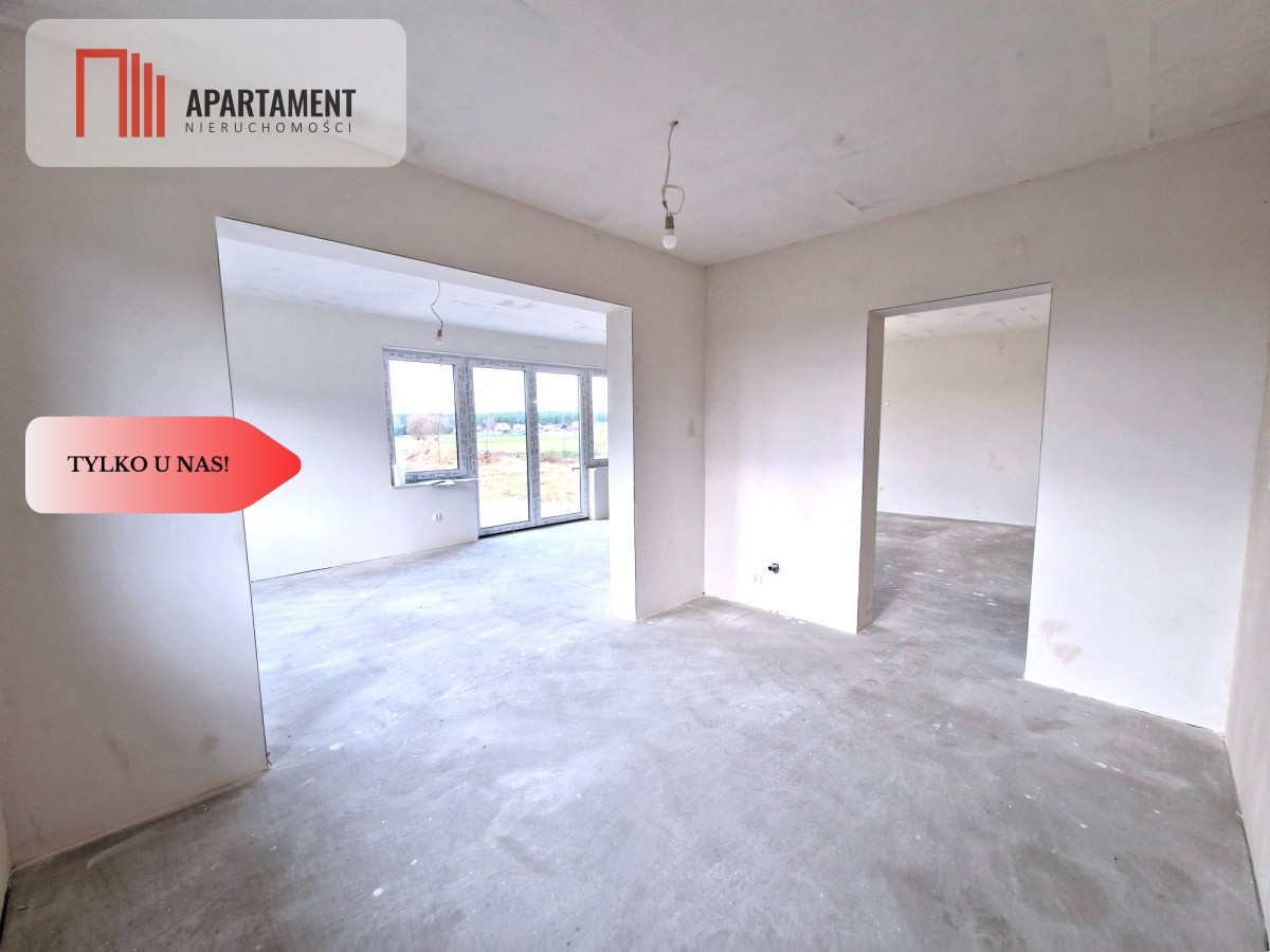 Dom znajduje się w stanie deweloperskim na ścianach gładzie i gotowa posadzka. Źródło ciepła do zainstalowania według indywidualnych preferencji przyszłego właściciela.
