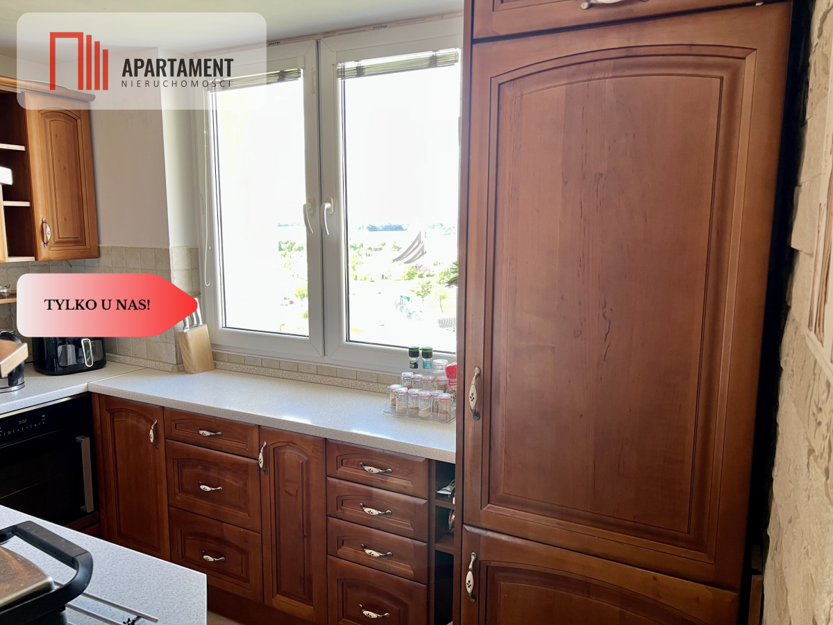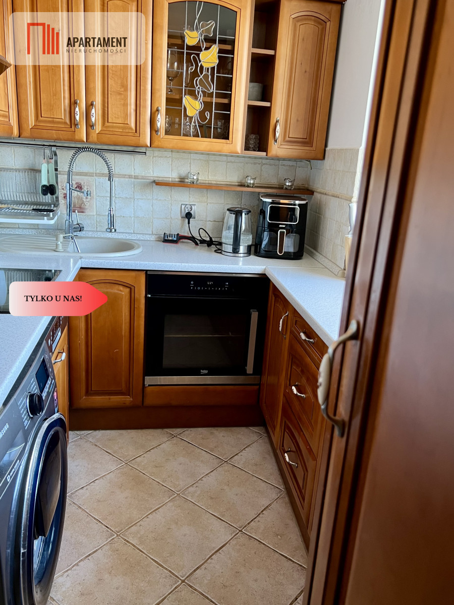 Skład mieszkania -3 pokoje, kuchnia (drewniana zabudowa na wymiar z pięknej jabłoni + nowoczesne AGD pralka, lodówka, piekarnik, płyta indukcyjna, okap, zmywarka), łazienka oraz przedpokój.