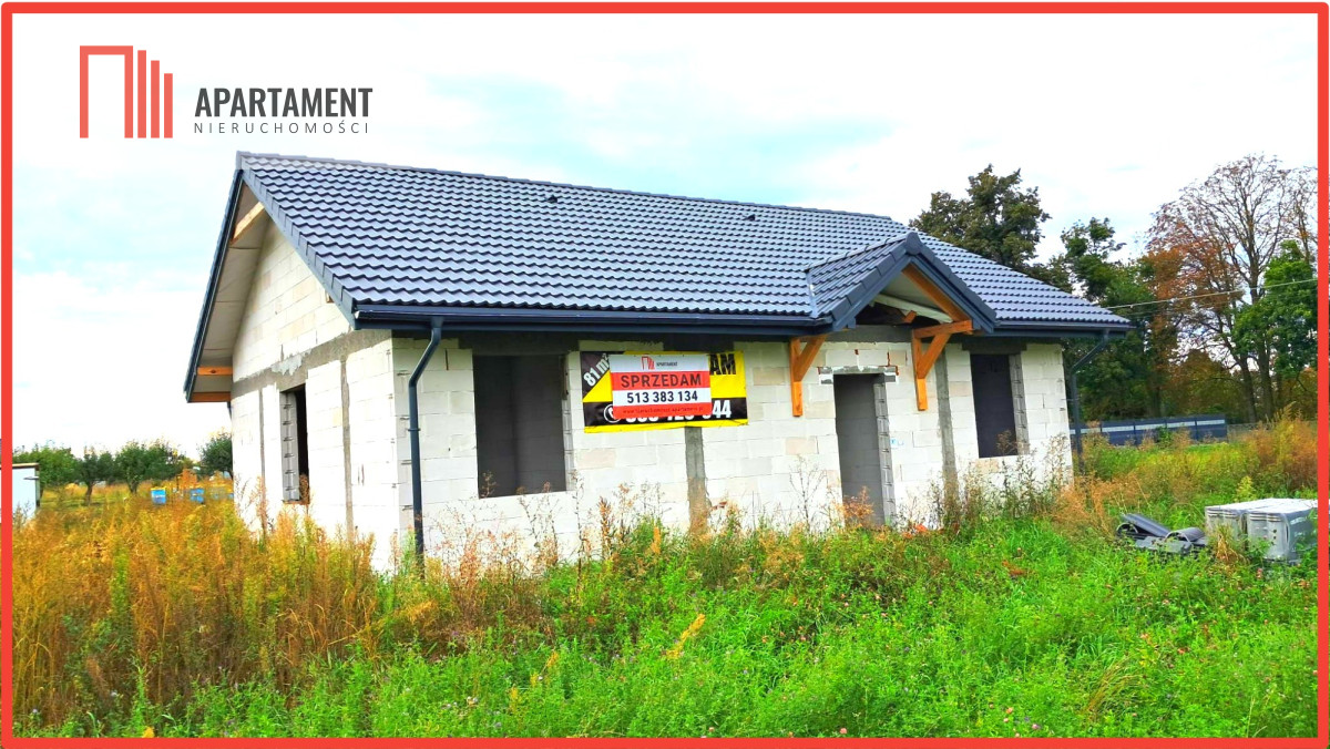Nieruchomość składa się z trzech sypialni, salonu z aneksem kuchennym z wyjściem na taras główny, przestronnej łazienki oraz wiatrołapu i kotłowni z oddzielnym wejściem. Budynek wzniesiony z pustaka a dach pokryty wysokiej jakości dachówką ceramiczną.
