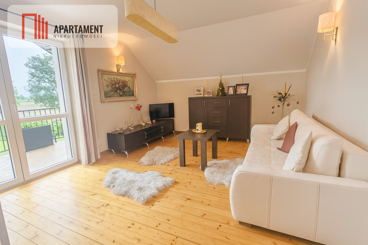 6 przestronnych pokoi, w tym słoneczny salon, który zapewnia wygodną przestrzeń do odpoczynku i spotkań rodzinnych