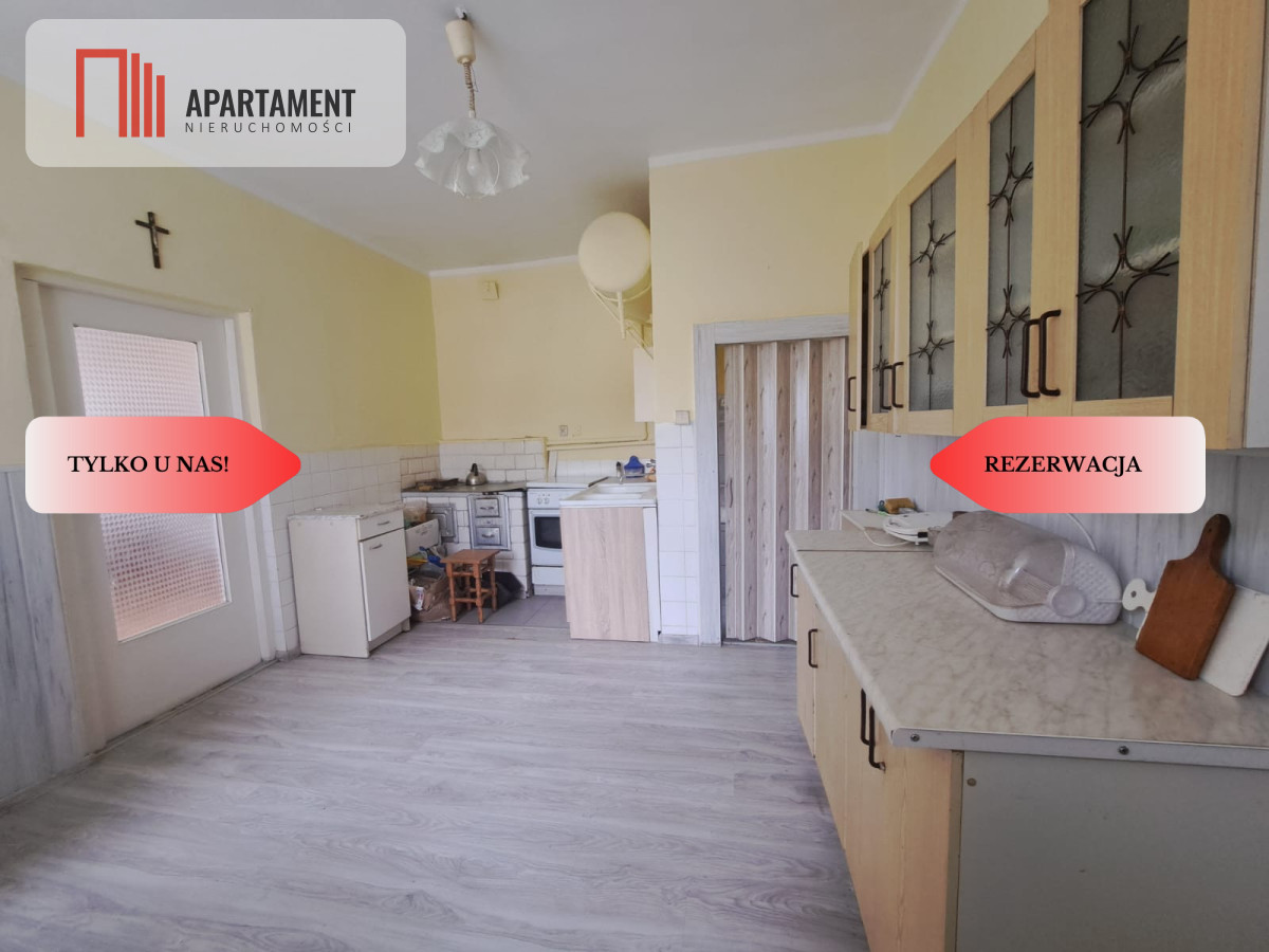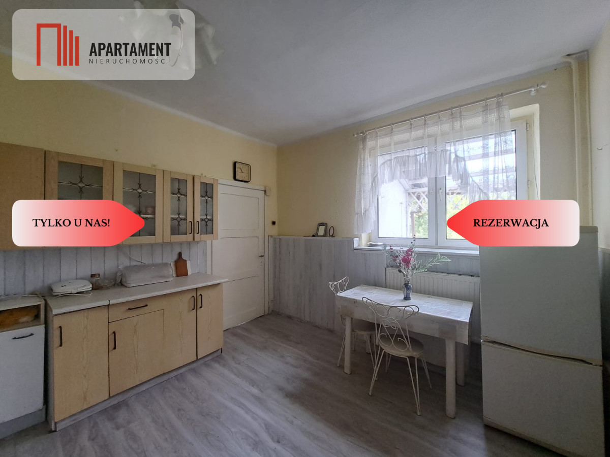 Na sprzedaż urokliwy dom (bliźniak) położony na dużej 19-arowej działce wraz z budynkami gospodarczymi i dwoma garażami wraz kanałem rewizyjnym. Powierzchnia użytkowa domu mierzy 75 m2. Nieruchomość usytuowana we wsi Kąty, gm. Wołów, powiat wołowski. Dom budowany z cegły pokryty blachodachówką. Na parterze znajdziemy wiatrołap, korytarz ze schodami prowadzącymi na piętro, kuchnię, łazienkę oraz duży pokój dzienny. Na podłodze znajdują się panele, z wyjątkiem łazienki pokrytej w całości kafelkami. Pokój dzienny ma wymienioną instalację elektryczną. W korytarzu znajdują się schody prowadzące w głąb piwnicy. Na piętrze duży pokój z garderobą o łącznej powierzchni 30 m2. Dom ogrzewany jest centralnie za pomocą pieca przystosowanego do spalania drewna, węgla, a także oleju opałowego. Okna pcv, na piętrze okna drewniane. Budynek posadowiony na dużej działce o łącznej powierzchni 1855 m2. Działka oznaczona miejscowym planem zagospodarowania przestrzennego oznaczona symbolem MNR. Teren przeznaczony pod budownictwo jednorodzinne i zagrodowe. Na działce znajdziemy liczne budynki gospodarcze, z czego jeden ma piwnicę. Mamy tutaj także 2 garaże, w tym jeden z kanałem rewizyjnym o łącznej powierzchni 36 m2. Media: woda miejska, prąd, kanalizacja: szambo. Do działki prowadzi gminna droga asfaltowa. Dom usytuowany jest w urokliwej okolicy. Z tarasu można podziwiać piękno pól porośniętych zbożem. Na działce znajduje się dużo drzew owocowych, a także ogródek warzywny. Ziemia jest żyzna i nadaje się świetnie do tego typu upraw. Możliwość aranżacji pod własne potrzeby, przebudowy czy zabudowy działki.