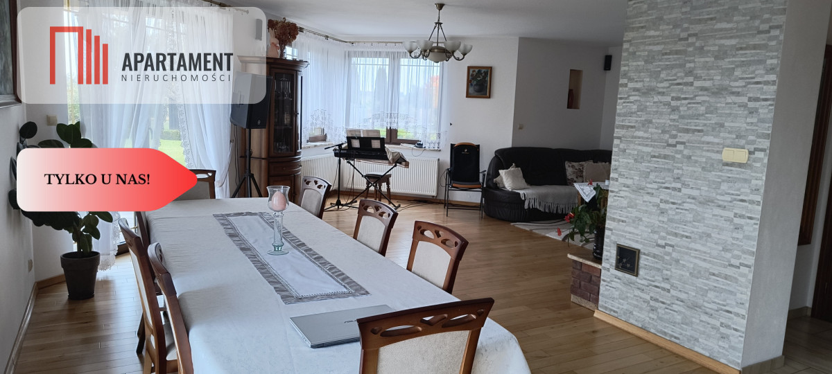 Dom wolnostojący, jednopiętrowy i podpiwniczony, o powierzchni 140 m², jest w pełni gotowy do zamieszkania.