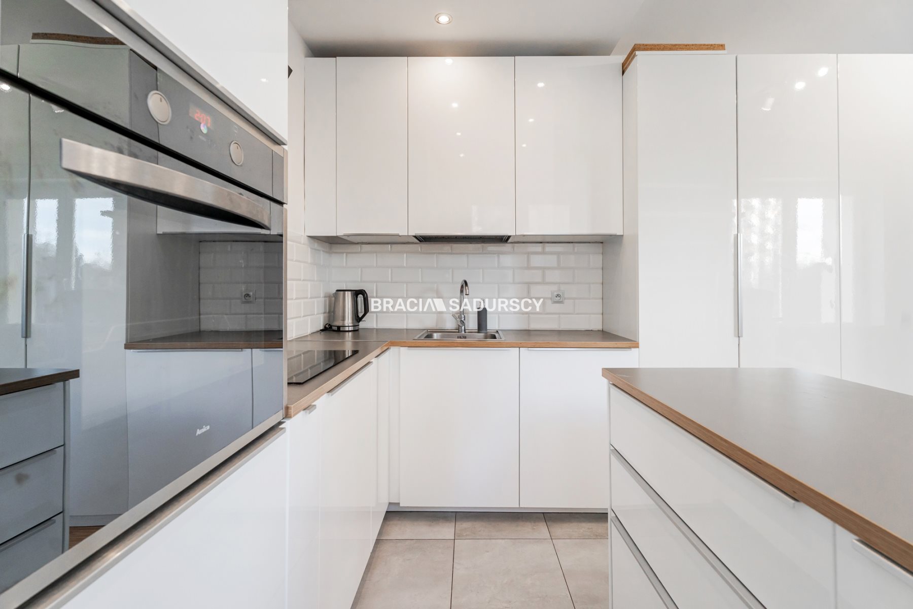 Kuchnia wyposażona w meble na wymiar i sprzęt AGD .