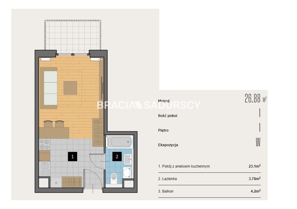 | Pow. użytkowa: | 26.88 m2 |