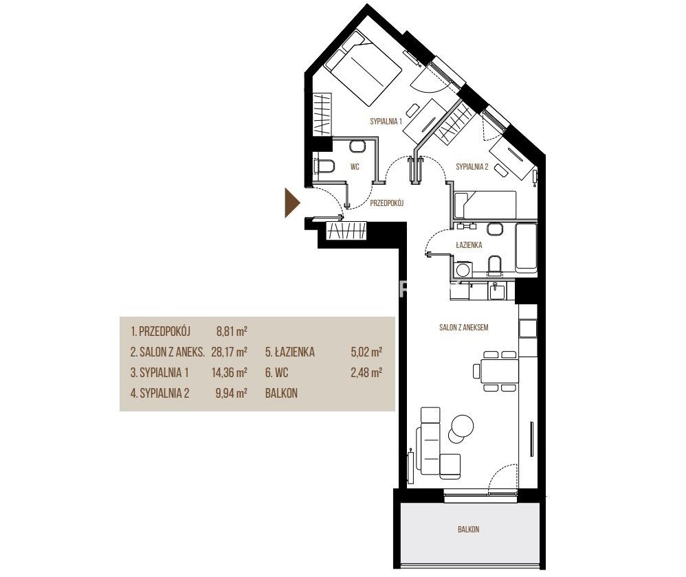 Osiedle FI, Podgórze, 3 pokoje z balkonem