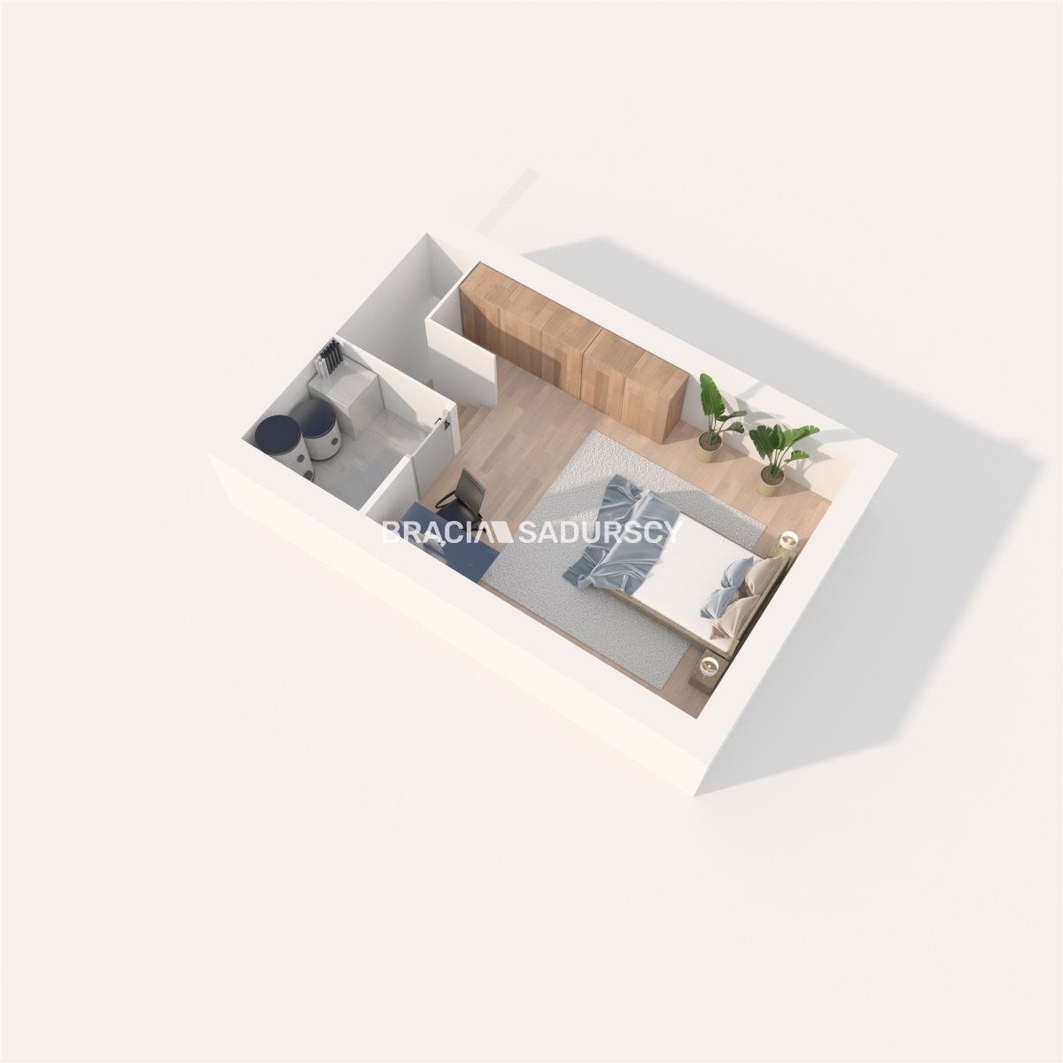 -Mieszkanie znajduje się na piętrze budynku w zabudowie bliźniaczej i składa się z przestronnego pokoju dziennego z aneksem kuchennym, dodatkową przestrzenią na spiżarnię, dwóch wygodnych pokoi oraz dużej łazienki. Na poddaszu znajduje się duża sypialnia, z możliwością wydzielenia drugiej łazienki.