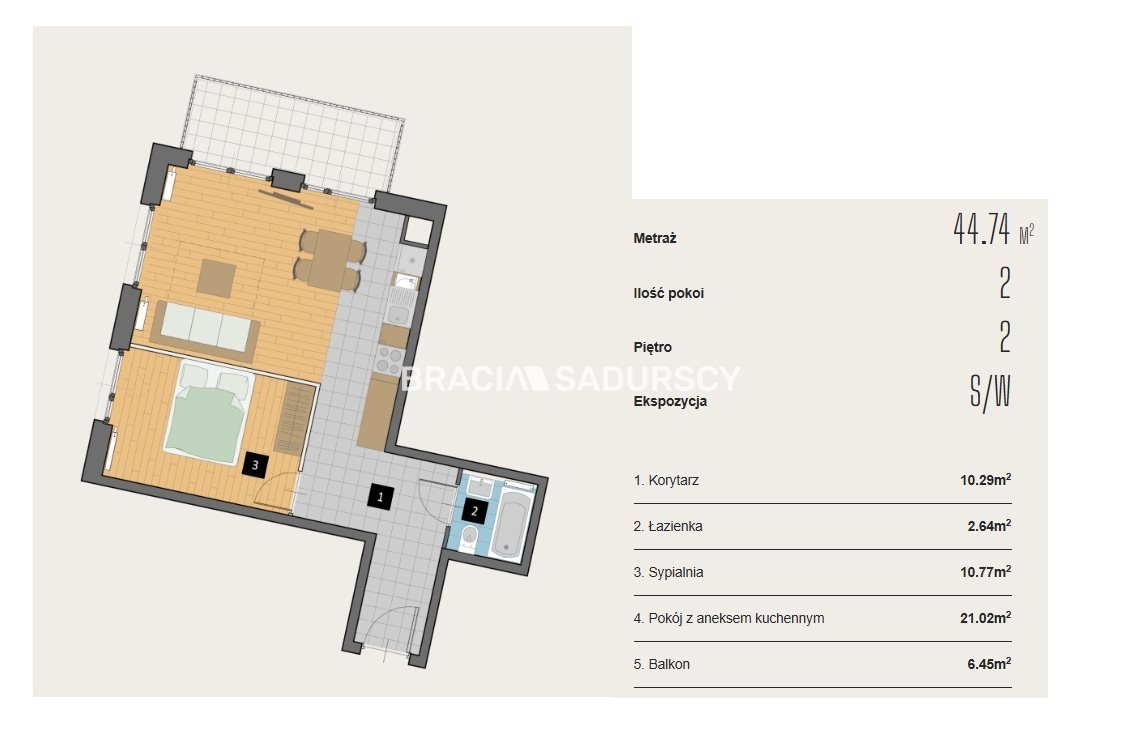 | Pow. użytkowa: | 44.74 m2 |