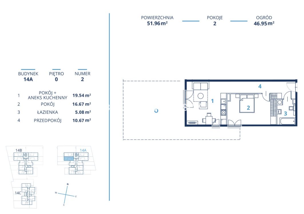 Metraże od 32m2 - 70m2 (-1,-2,-3, pokojowe)