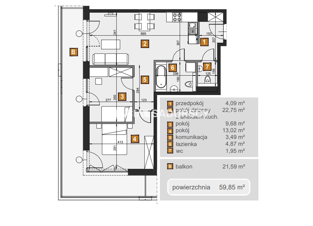 | Pow. użytkowa: | 59.85 m2 |