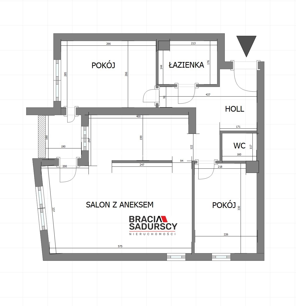 Rozkład i wymiary poszczególnych pomieszczeń zawiera załączony w ogłoszeniu rzut.