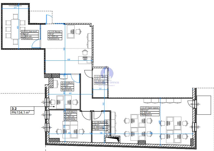 Umeblowana, gotowa przestrzeń biurowa, idealna dla firmy poszukującej komfortowego i dobrze skomunikowanego biura.