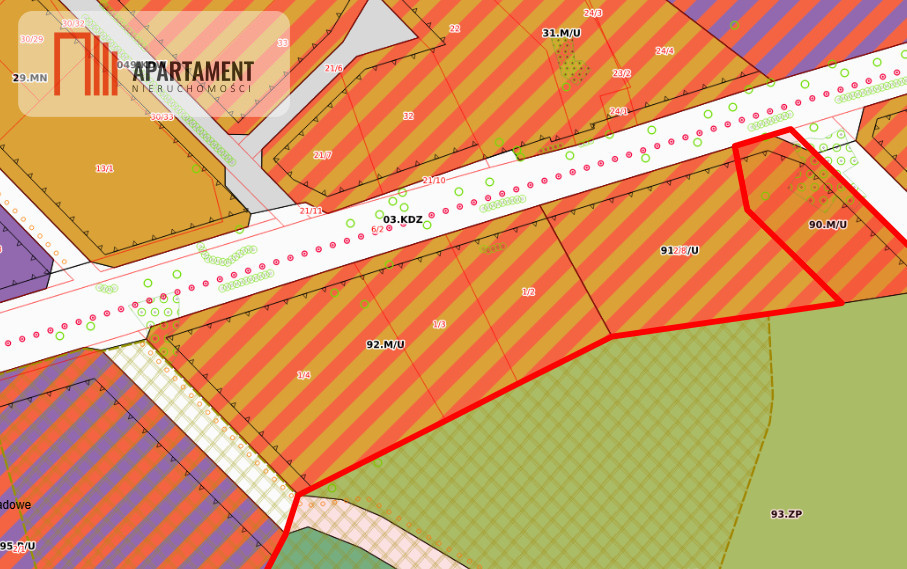 Działka znajduje się na obszarze zabudowy mieszkaniowej i usługowej - symbol 92.M/U.