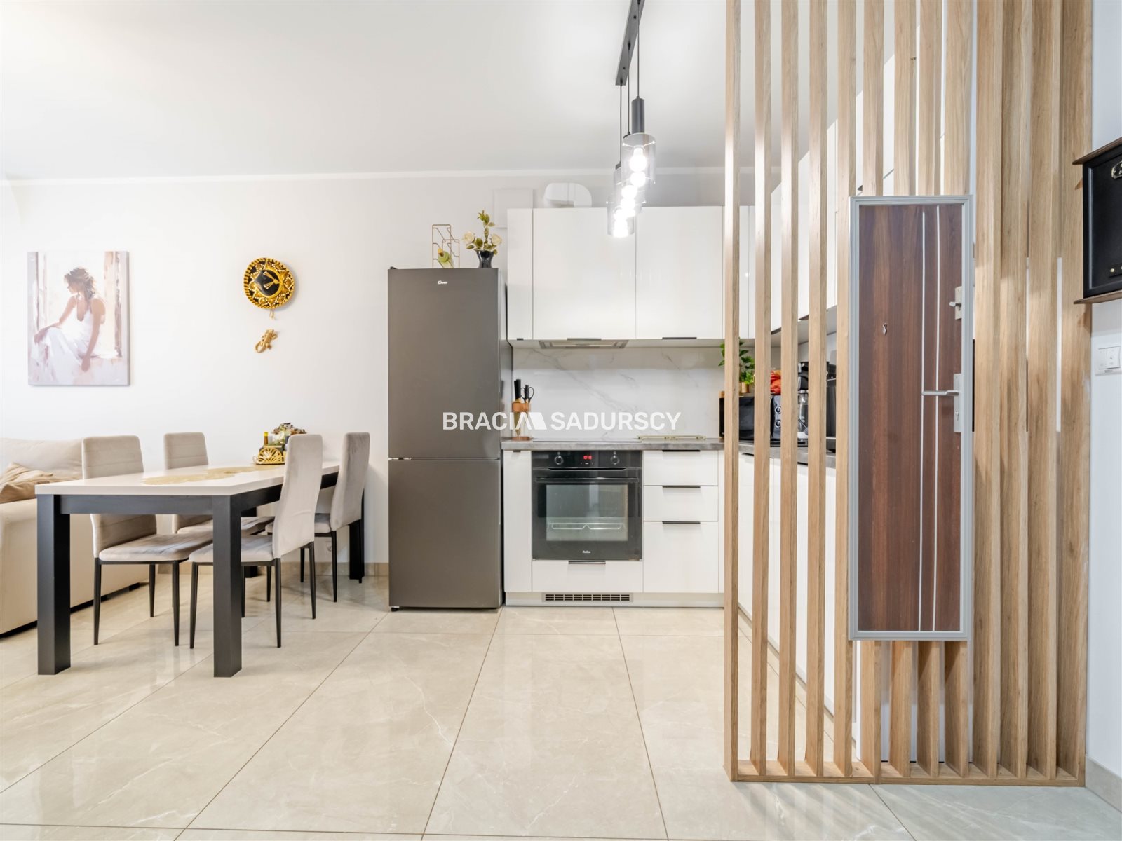 Kuchnia jest w pełni wyposażona, piekarnik, płyta indukcyjna, zmywarka, lodówko-zamrażarka, okap oraz zabudowa kuchenna wchodzą w skład oferty.
