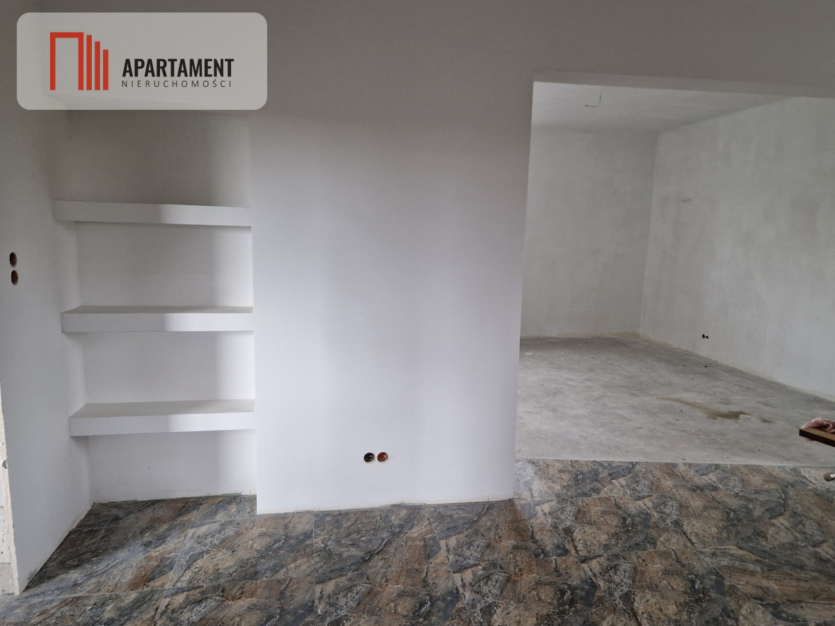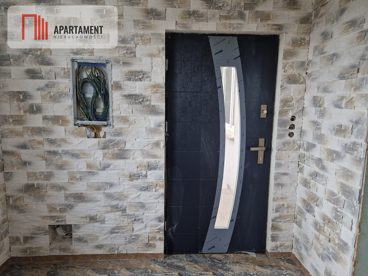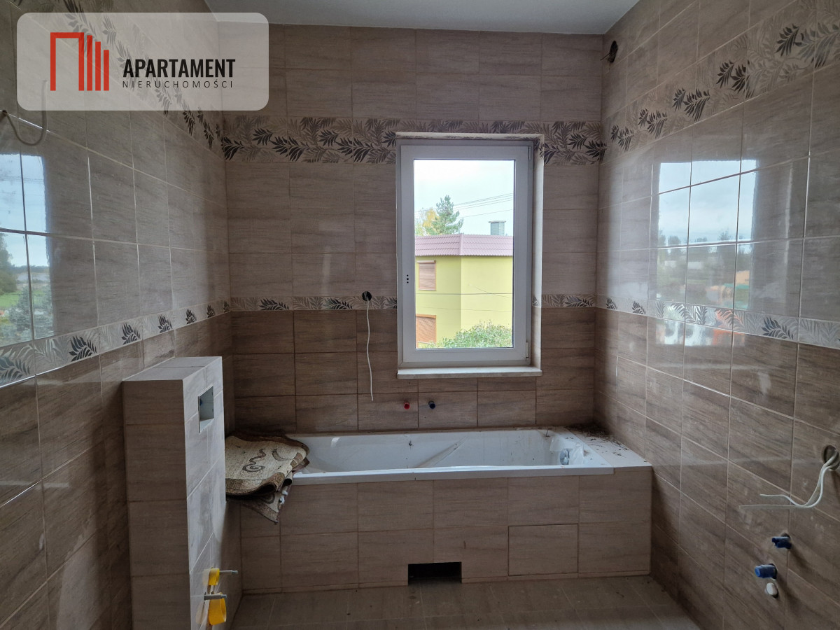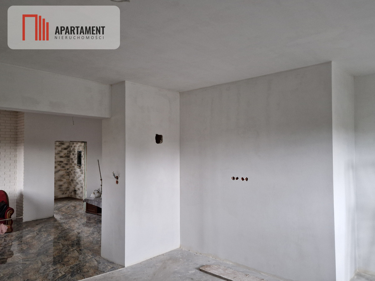 Budynek murowany z pustaków suporex (cały pustak - szczelina - pół pustaka), ocieplony styropianem o grubości 12cm. Elewacja wykończona tynkiem dekoracyjnym w tonacji szarej. Dach ocieplony, kryty papą zgrzewalną. Nowoczesne okna dwukomorowe (3 szyby) w białym kolorze, z roletami zewnętrznymi w kolorze szarym i sterowaniem elektrycznym. Piętro domu posiada ogrzewanie podłogowe oraz wyprowadzenia do kaloryferów. Wykonane zostały wykończenia aneksu kuchennego, wiatrołapu, w łazience położone płytki, zainstalowana wanna, brakuje tylko kabiny prysznicowej. Ściany przygotowane do malowania i wykończenia wg własnej koncepcji. Parter jest w stanie surowym zamkniętym. Budynek jest podłączony do instalacji elektrycznej 400V. Woda z wodociągu i kanalizacja. Przewidziane ogrzewanie piecem na ekogroszek (piec na miejscu). Dojazd do działki drogą wykonaną z kostki brukowej. Działka płaska. Wykonane wybrukowanie z kostki przed i wokół domu. Reszta działki do zagospodarowania wg. własnej koncepcji. Dokumentacja budowlana prowadzona na bieżąco.