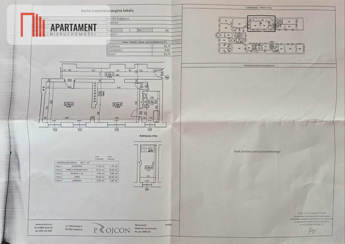 Mieszkanie 2 pokoje w cetrum, 57 m² użytkowe plus antresola - łączny metraż około 64 m².