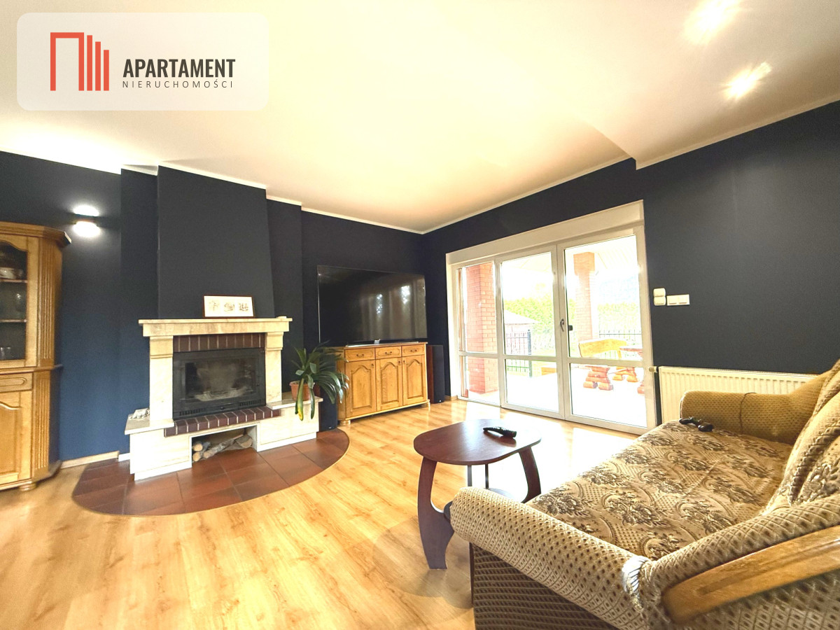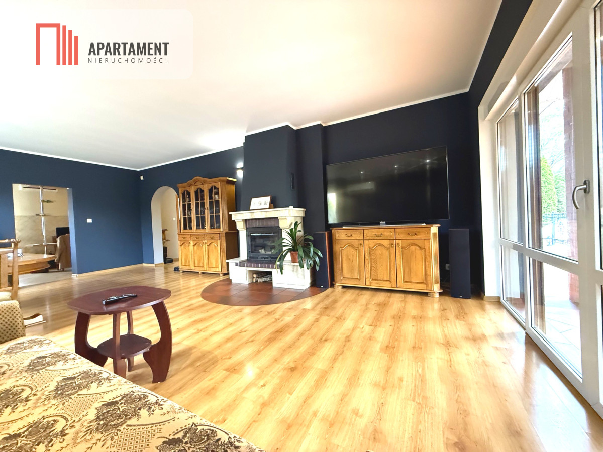 - salon ok. 30 m² z kominkiem,