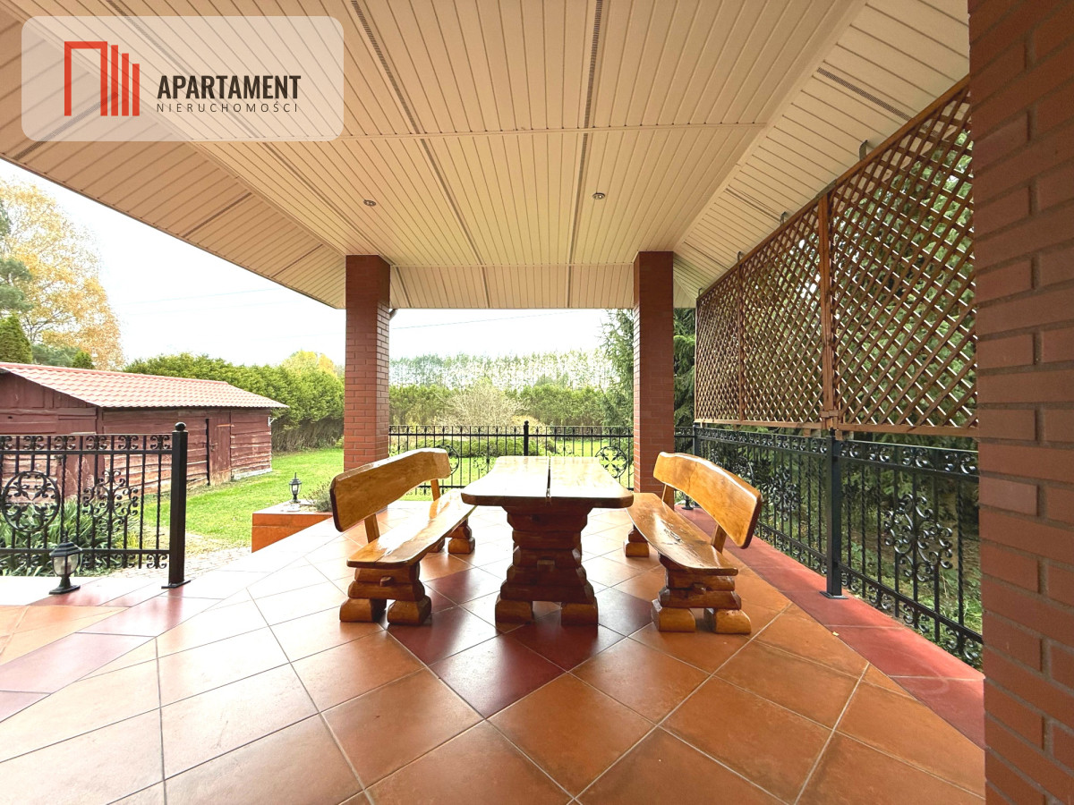 Na zewnątrz taras ok. 50 m², częściowo zadaszony - idealny do odpoczynku i spotkań z rodziną.