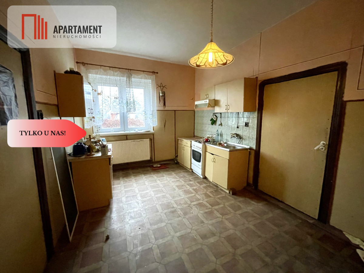 Dom z częściowo wymienionymi oknami (PCV i drewniane) oraz dużym strychem, który można zaadoptować na dodatkowe pokoje lub przestronną część użytkową.