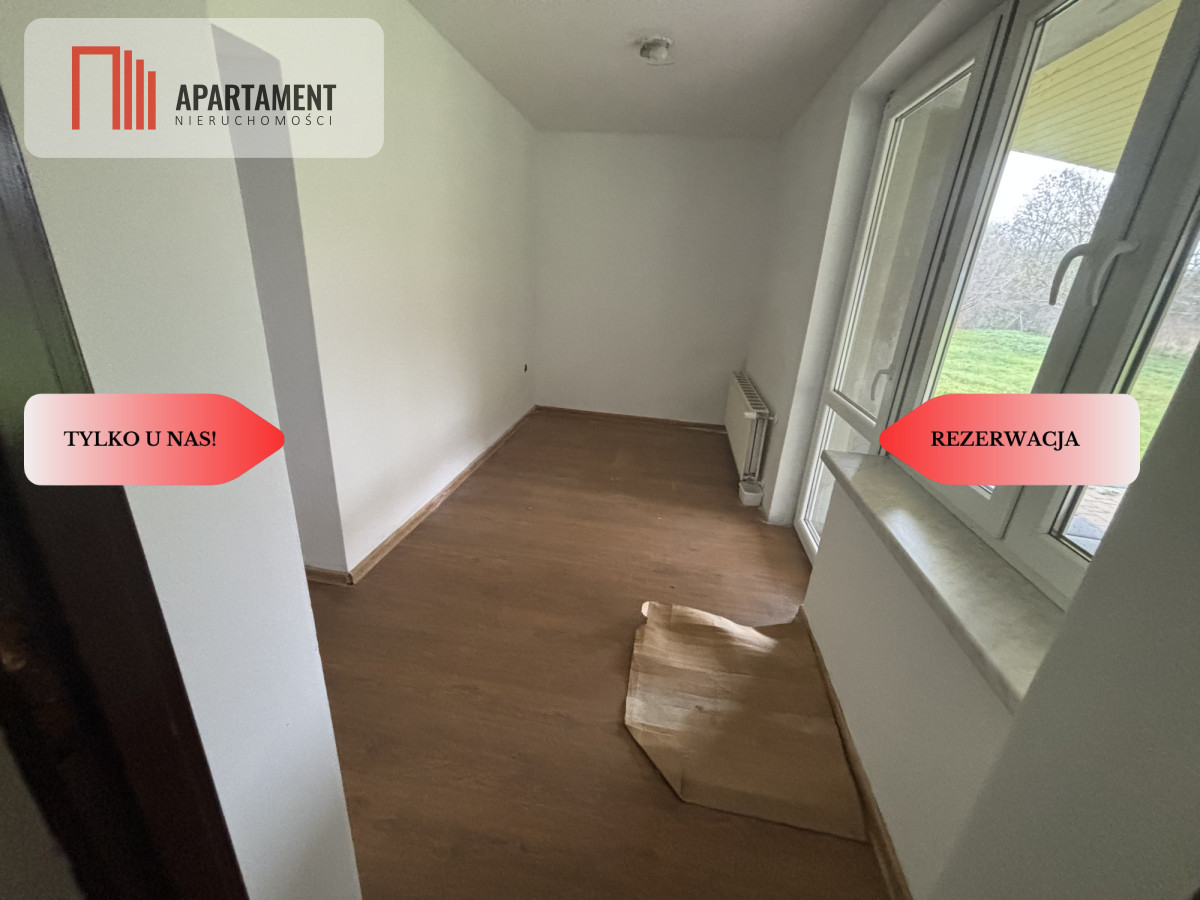 Do sprzedania dom w zabudowie bliźniaczej o powierzchni użytkowej 185 m2. Dom z lat 40 tych posadowiony na 20 arowej działce. Posesja ogrodzona, działka oznaczona w studium jako teren zabudowy mieszkaniowej jednorodzinnej, zagrodowej i rezydencyjnej. Na powierzchnie domu składają się 4 pokoje, kuchnia, łazienka z prysznicem i wanną oraz 2 toalety. Możliwość adaptacji poddasza co daje kolejne metry powierzchni mieszkalnej. Dom po generalnym remoncie, wymieniono i ocieplono dach, ściany docieplono styropianem, zrobiono nową hydraulikę i elektrykę, położono gładzie we wszystkich pomieszczeniach. Dodatkowo oprócz kaloryferów w domu zrobiono też ogrzewanie podłogowe. Odnowiono też ganek oraz zrobiono zadaszenie nad tarasem. Położono kostkę brukową przy wjeździe do budynku. Przy domu komórka oraz miejsce na drewno i opał. Na posesji blaszany garaż na 2 samochody. Media: woda miejska, prąd, szambo, studnia. Dom ogrzewany piecem na węgiel i drewno. Piękny widok na las oraz szybki dojazd do drogi prowadzącej do Wąsosza czy Wołowa.