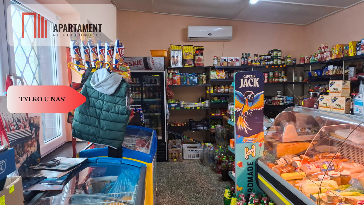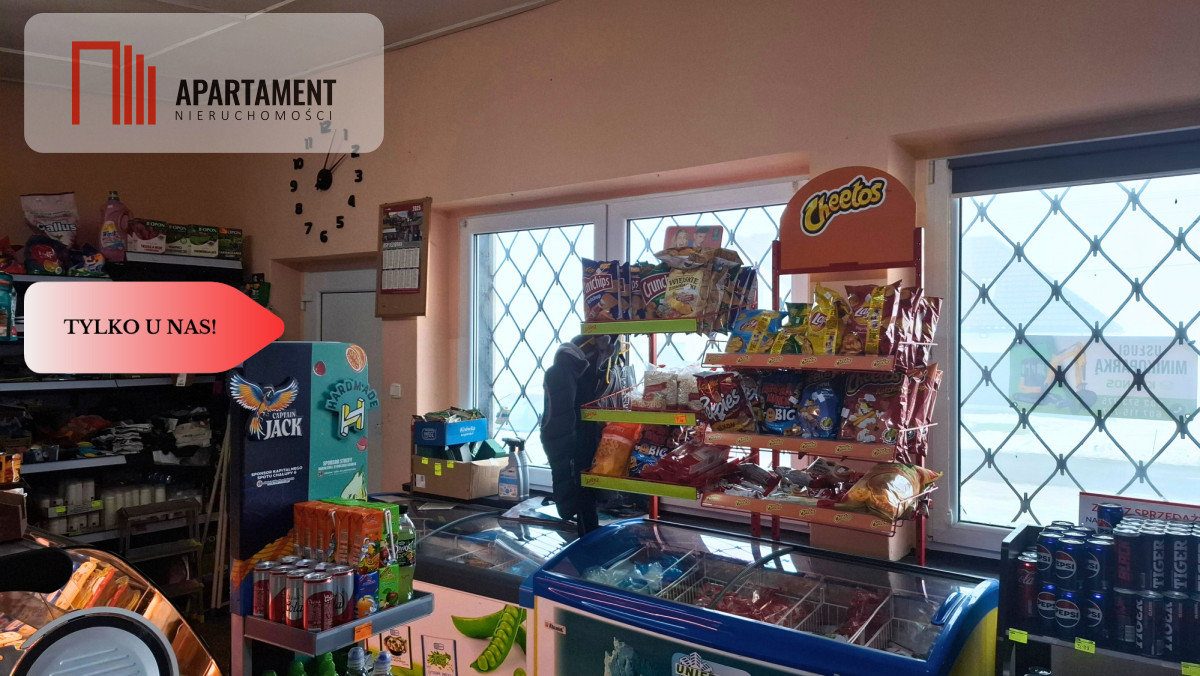 Obiekt dotychczas działał jako sklep spożywczy (świetna baza dla sklepu, punktu usługowego lub innego pomysłu), ale jego układ pozwala łatwo stworzyć wygodną przestrzeń mieszkalną.