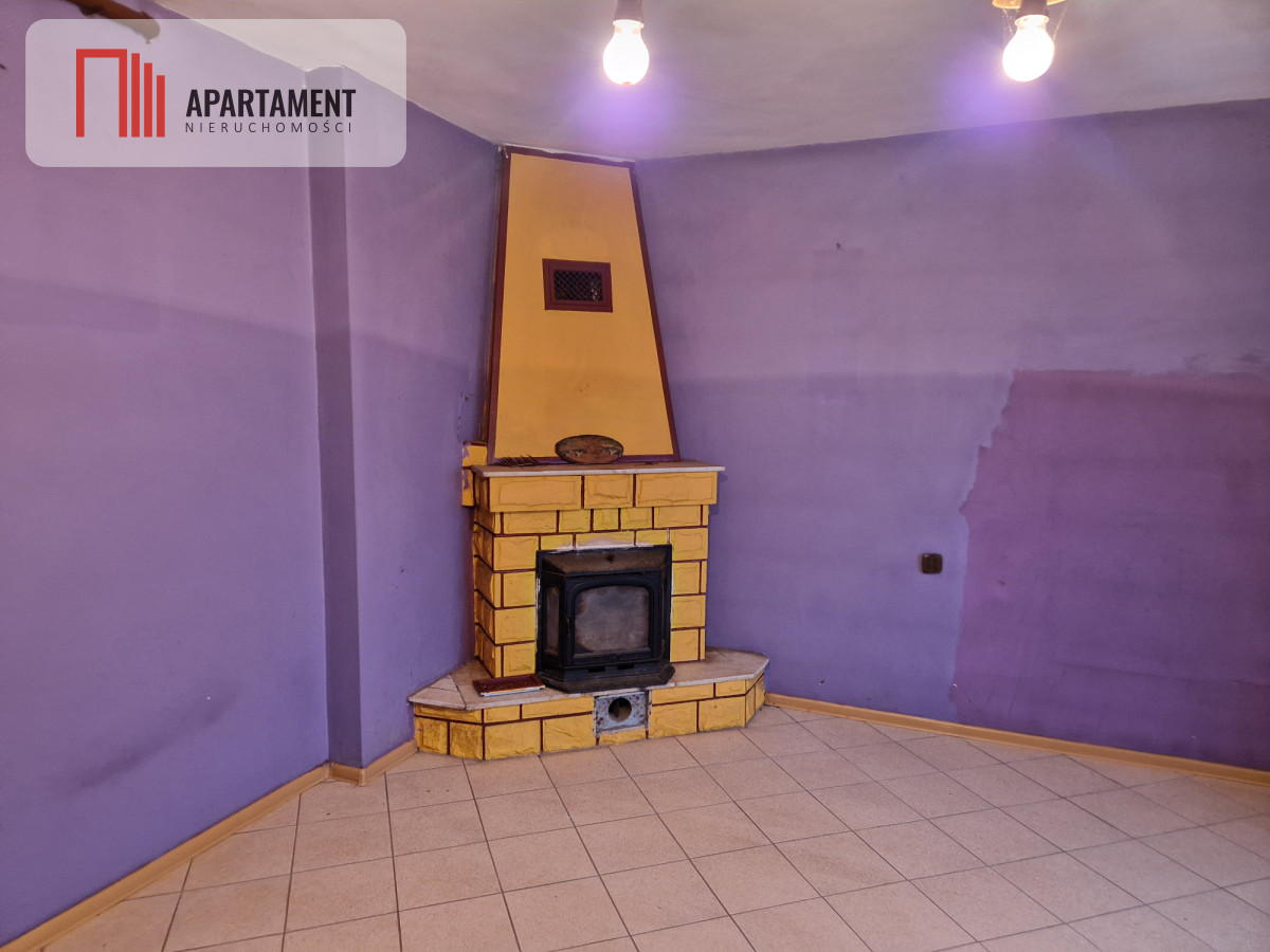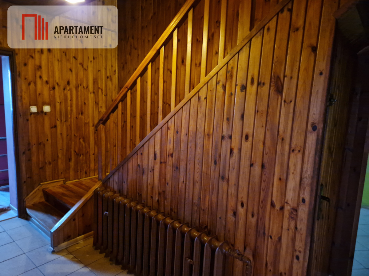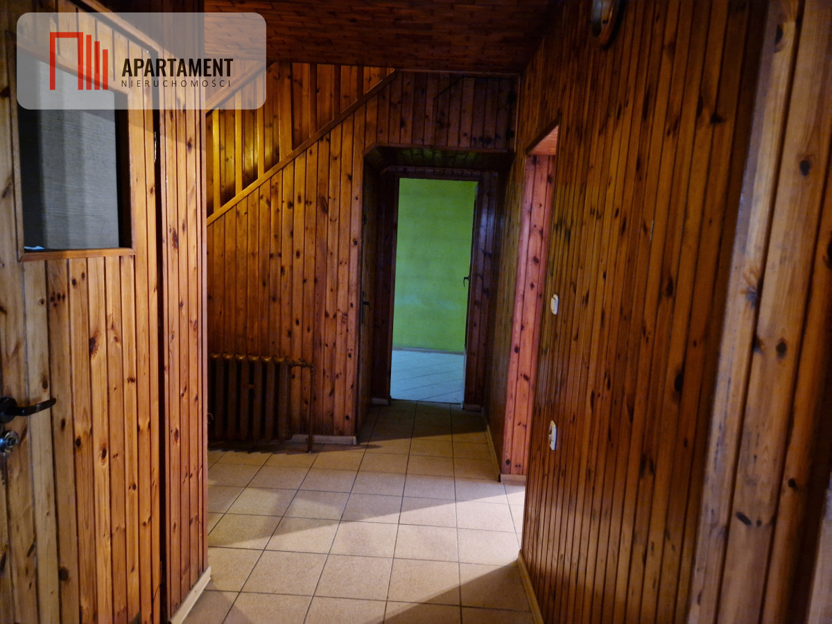 Jest to budynek parterowy, z dachem ukośnym, kryty eternitem. Mieszczą się w nim 3 pokoje na parterze i 1 na poddaszu, kuchnia, 2 łazienki (1 na poddaszu), przedpokój, odrębne WC i wiatrołap. Pod połową domu znajduje się piwnica. Strych częściowo zagospodarowany pod pokój i łazienkę. Z salonu jest bezpośrednie wyjście na taras. Okna są drewniane, drzwi również starego typu. Na podłogach znajdują się płytki ceramiczne i panele. Na ścianach gładzie, tynki oraz boazeria. Dom jest ogrzewany piecem tzw. "śmieciuchem". Budynek podłączony do sieci energetycznej 230V i wiejskiej sieci wodociągowej. Odprowadzenie ścieków do szamba. Ogólnie, to dom wymaga remontu.