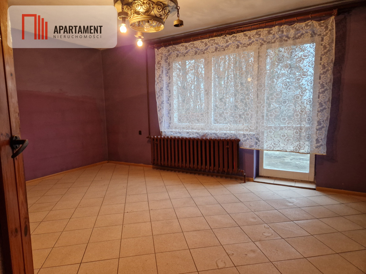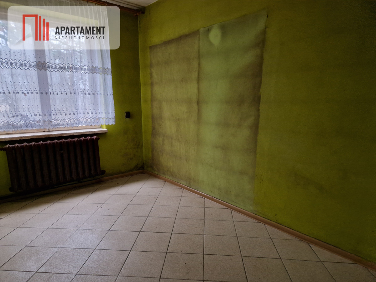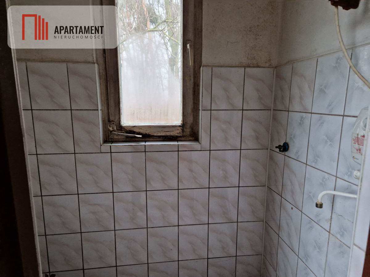 Jest to budynek parterowy, z dachem ukośnym, kryty eternitem. Mieszczą się w nim 3 pokoje na parterze i 1 na poddaszu, kuchnia, 2 łazienki (1 na poddaszu), przedpokój, odrębne WC i wiatrołap. Pod połową domu znajduje się piwnica. Strych częściowo zagospodarowany pod pokój i łazienkę. Z salonu jest bezpośrednie wyjście na taras. Okna są drewniane, drzwi również starego typu. Na podłogach znajdują się płytki ceramiczne i panele. Na ścianach gładzie, tynki oraz boazeria. Dom jest ogrzewany piecem tzw. "śmieciuchem". Budynek podłączony do sieci energetycznej 230V i wiejskiej sieci wodociągowej. Odprowadzenie ścieków do szamba. Ogólnie, to dom wymaga remontu.