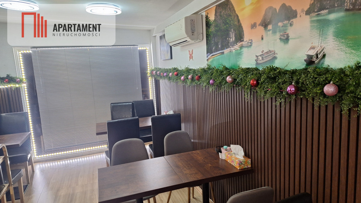 Sala główna, kuchnia, dwa pomieszczenia na zapleczu. Toaleta dla klientów, oraz pomieszczenie socjalne dla pracowników. Duże drzwi do przyjmowania dostaw z bezpośrednim dostępem z ulicy.