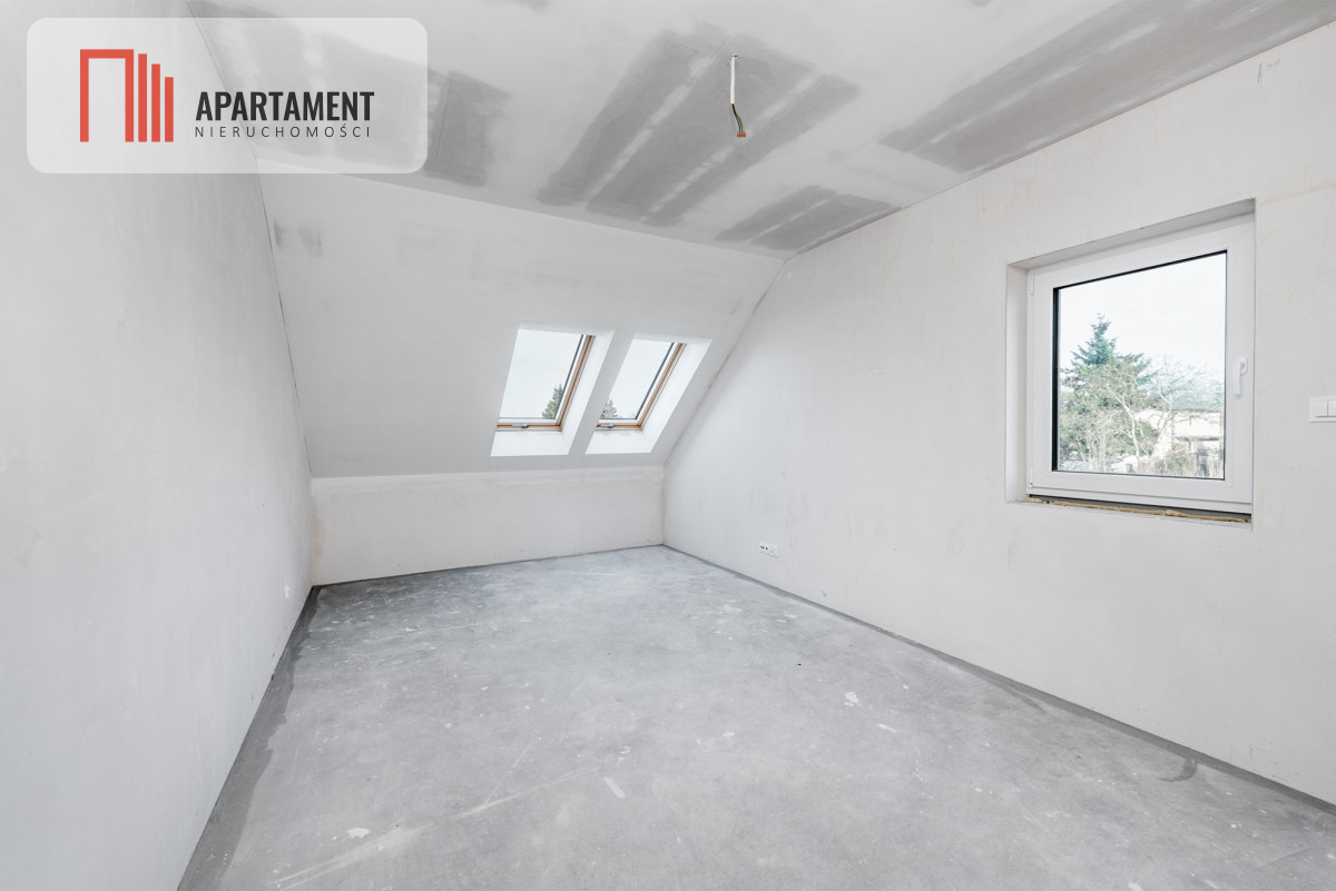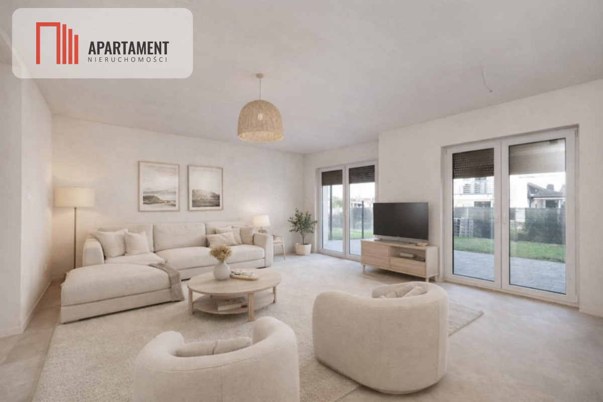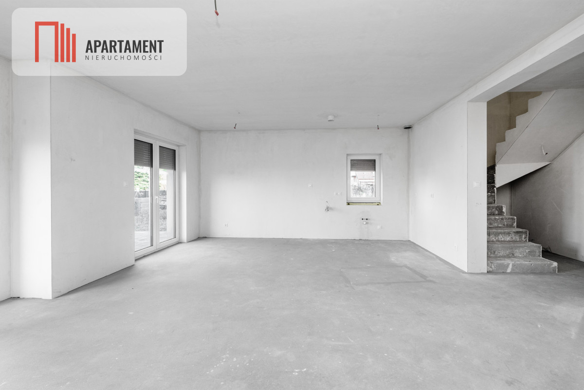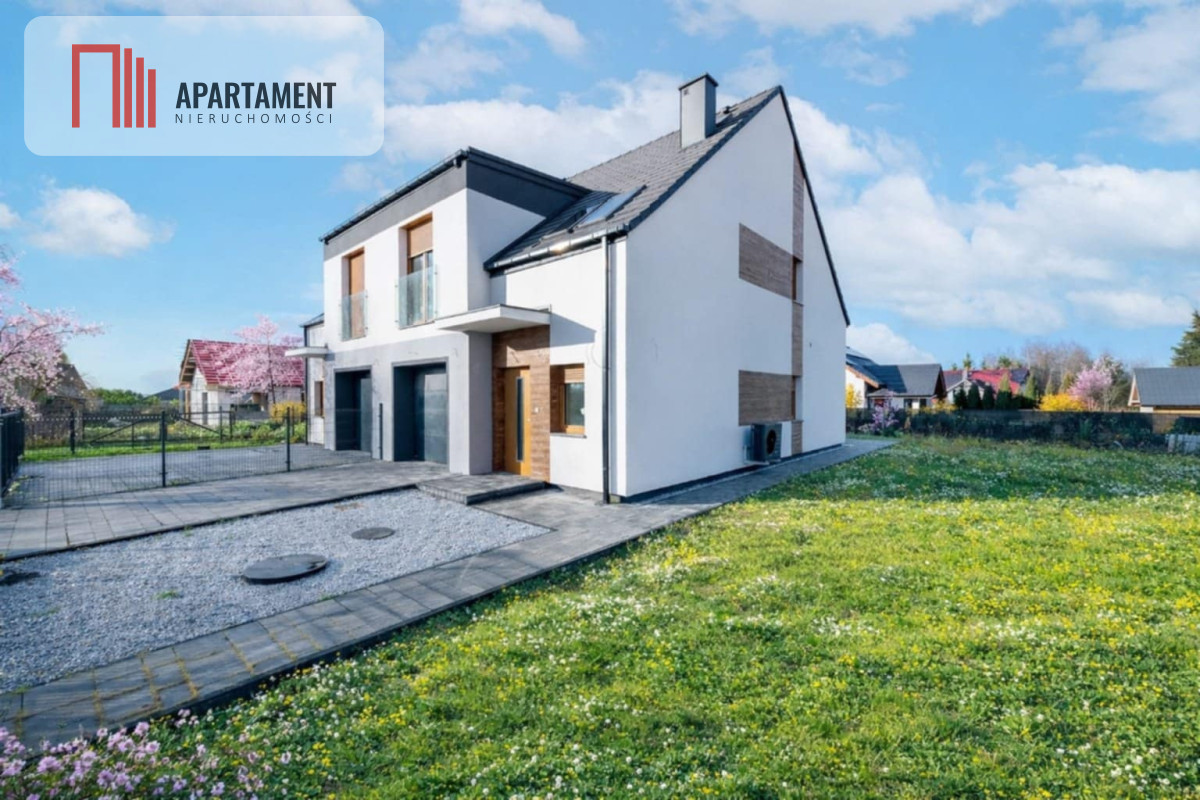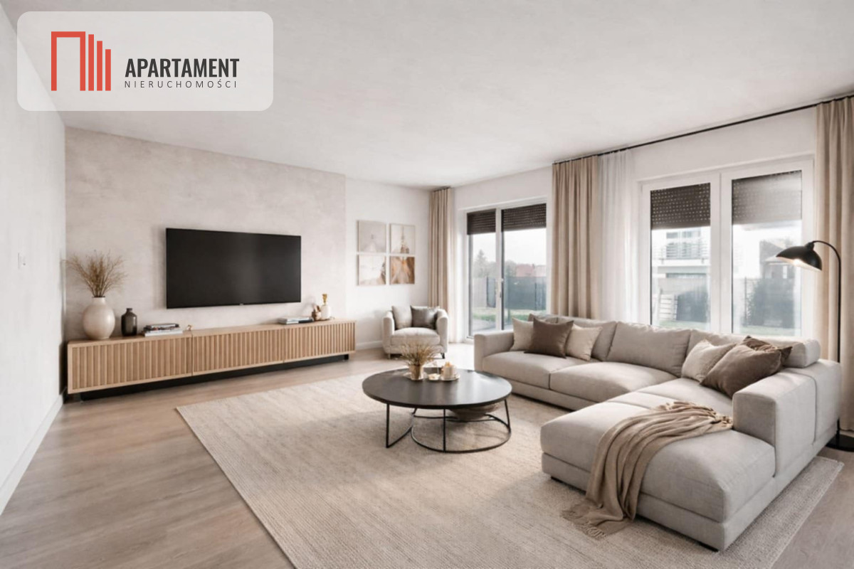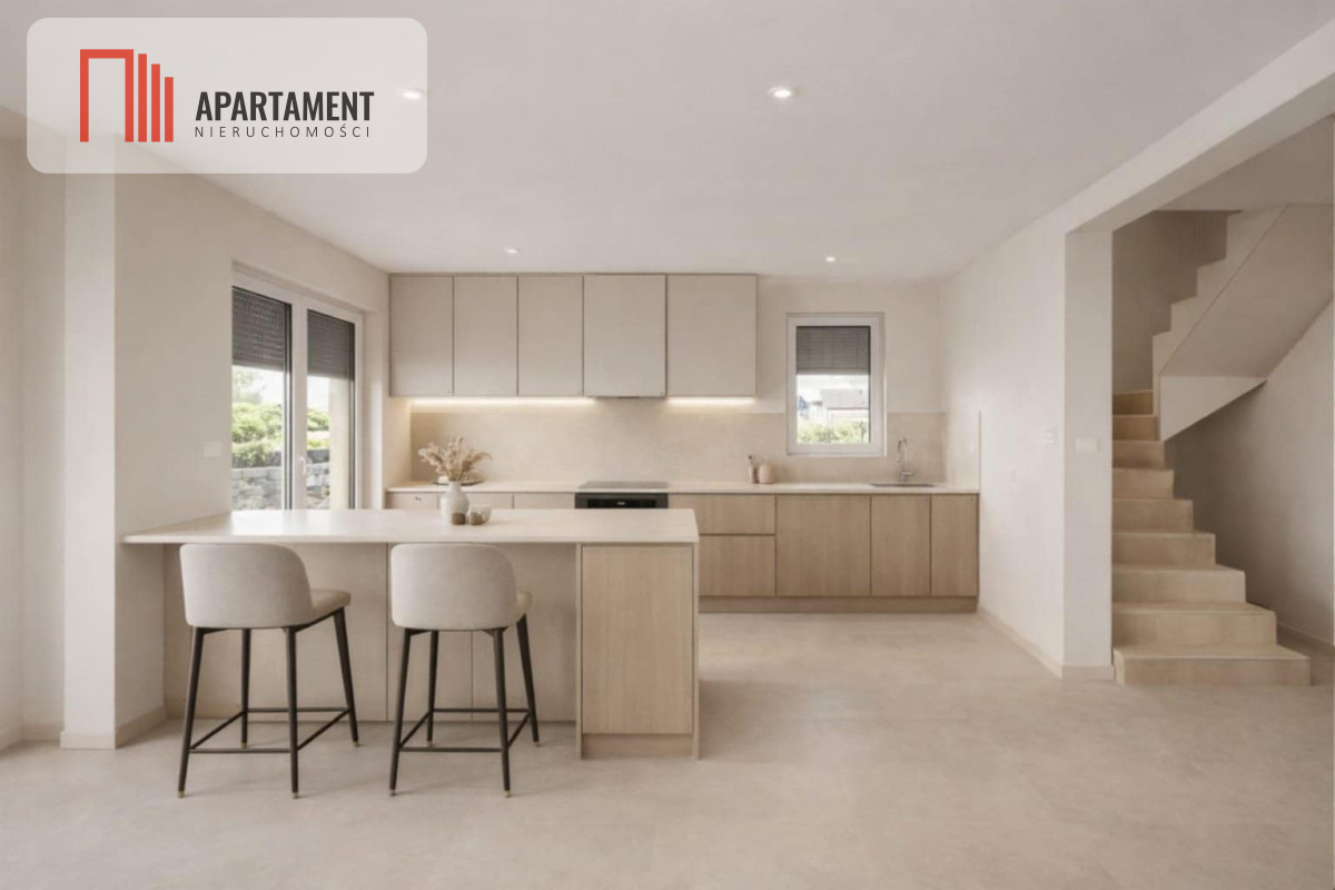 Oferta dotyczy sprzedaży domu w zabudowie bliźniaczej na nowo powstałym osiedlu domów jednorodzinnych w cichej okolicy Wołowa. Dom z roku 2025 sprzedawany w stanie deweloperskim. Powierzchnia użytkowa mierzy 126,12 m2 i składa się z parteru i piętra. Bliźniak posadowiony na działce o powierzchni 412 m2. Posesja ogrodzona. Na parterze znajduje się: wiatrołap (5,60 m2), korytarz ( 2,48 m2), garaż (17,28 m2), łazienka (4,27 m2), klatka (4,35 m2), salon z aneksem kuchennym (34,62 m2). Na piętro prowadzą schody lane żelbetowe, gdzie znajdują się 4 sypialnie ( 7,09 m2, 11,50 m2, 13,64 m2, 17,43 m2) oraz łazienka (3,74 m2). Dodatkowo do adaptacji strych. Standard wykończenia: fundamenty: bloczki betonowe z izolacją termiczną, ściany: pustak komórkowy 25 cm, strop Terriva, więźba dachowa, dach pokryty dachówką betonową w kolorze czarnym (ocieplony styropianem 20 cm), tynki wewnętrzne gipsowe, okna pcv w okleinie dwustronnej, rolety zewnętrzne elektryczne. Ogrzewanie domu i c.w.u. pompą ciepła PANASONIC, w całym domu ogrzewanie podłogowe. Media miejskie: woda, kanalizacja, prąd, światłowód. Dojazd drogą gminną, utwardzoną. Niewątpliwie największym atutem nieruchomości jest lokalizacja, wysoki standard wykończenia budynku, funkcjonalny układ pomieszczeń oraz atrakcyjna cena. W bliskiej odległości szkoła, sklepy, punkty usługowe, stacja pkp, piękne zielone tereny, ścieżki rowerowe. Przedstawione wizualizacje pokazują jak finalnie mogą wyglądać wnętrza tego pięknego domu!