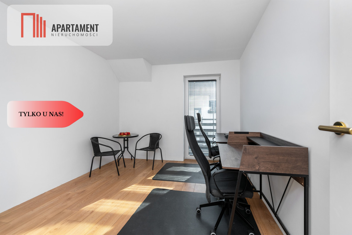 Do sprzedania duże, rozkładowe 4 pokojowe mieszkanie z balkonem na I piętrze w budynku z roku 2022 na kameralnym osiedlu w Wołowie. Powierzchnia użytkowa mierzy 82,40 m2. Mieszkanie bardzo ładnie wykończone, w jasnych, ciepłych kolorach. Na poziomie pierwszym znajduje się przedpokój, 2 sypialnie, łazienka i salon z aneksem kuchennym. Kręcone schody w stylu loftowym prowadzą na piętro na którym znajduje się pokój pełniący obecnie funkcję pokoju gościnnego. Kuchnia bardzo ładnie wykończona, wysokiej jakości meble w zabudowie wraz ze sprzętem agd, blaty z konglomeratu kwarcowego, podwieszany blat. Łazienka z prysznicem typu walk in. Na podłogach gres oraz panele imitujące drewno, białe drzwi wewnętrzne. W mieszkaniu ogrzewanie podłogowe, na piętrze elektryczne. Czynsz do wspólnoty ok. 250 zł plus opłaty za gaz, prąd i wodę. Ogrzewanie mieszkania i c.w.u. piecem gazowym. Doprowadzony światłowód. Niskie koszty utrzymania. Przed budynkiem przypisane miejsce postojowe. Nieruchomość idealna dla rodziny, pary lub inwestycyjnie pod wynajem. W bliskiej odległości sklepy, markety, punkty usługowe, szkoła, przedszkole, przychodnia, policja, basen, siłownia, targ miejski.