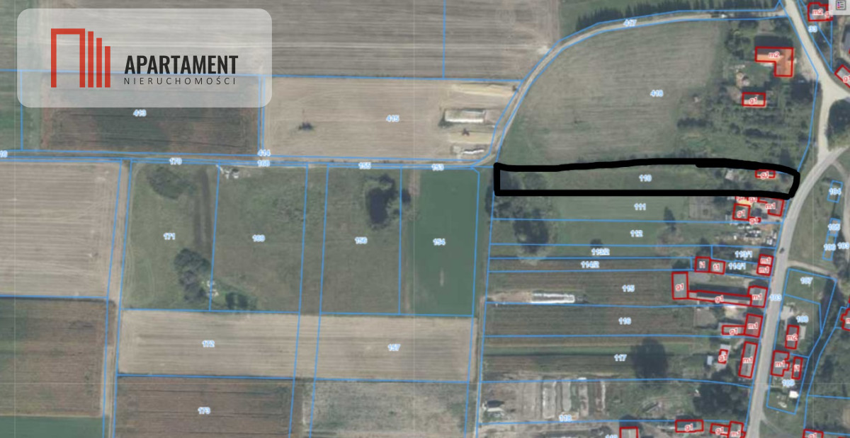 Działka ma kształt długiej, środkowej parceli, położonej bezpośrednio przy drodze asfaltowej, co zapewnia wygodny dojazd przez cały rok. Teren jest dość płaski, co ułatwia przyszłą zabudowę.