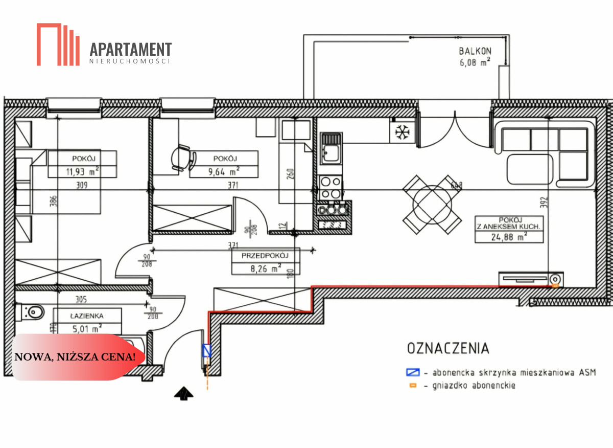 Wnętrze mieszkania wyróżnia się funkcjonalnym rozkładem pomieszczeń, który zapewnia komfort i wygodę. Do dyspozycji przyszłych właścicieli pozostaje przestronny salon z aneksem kuchennym, dwie sypialnie, elegancka łazienka oraz korytarz. Wysokiej jakości materiały wykończeniowe, nowoczesne rozwiązania technologiczne i świetne oświetlenie sprawiają, że mieszkanie jest nie tylko komfortowe, ale również estetyczne.