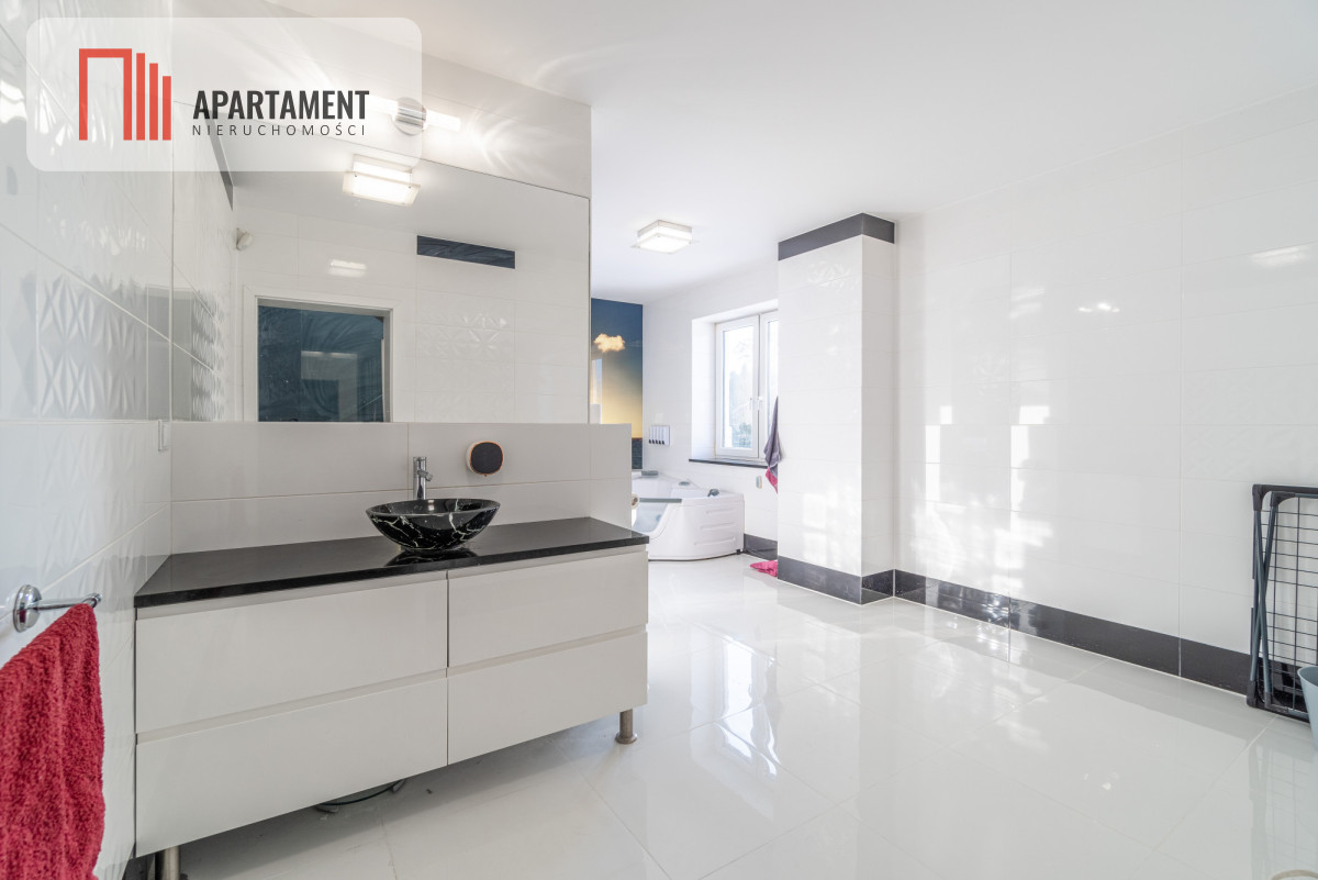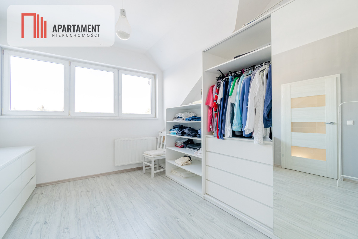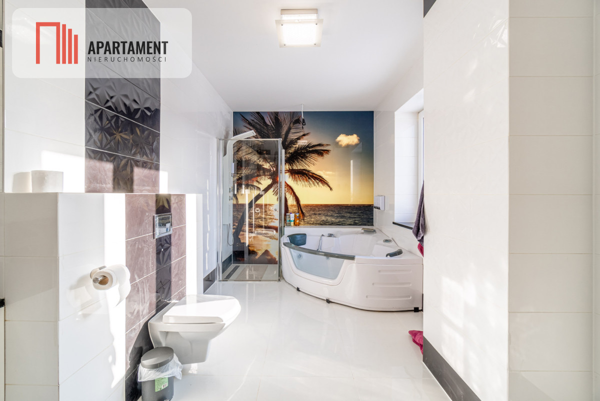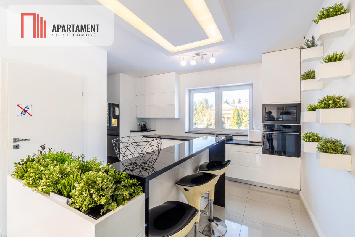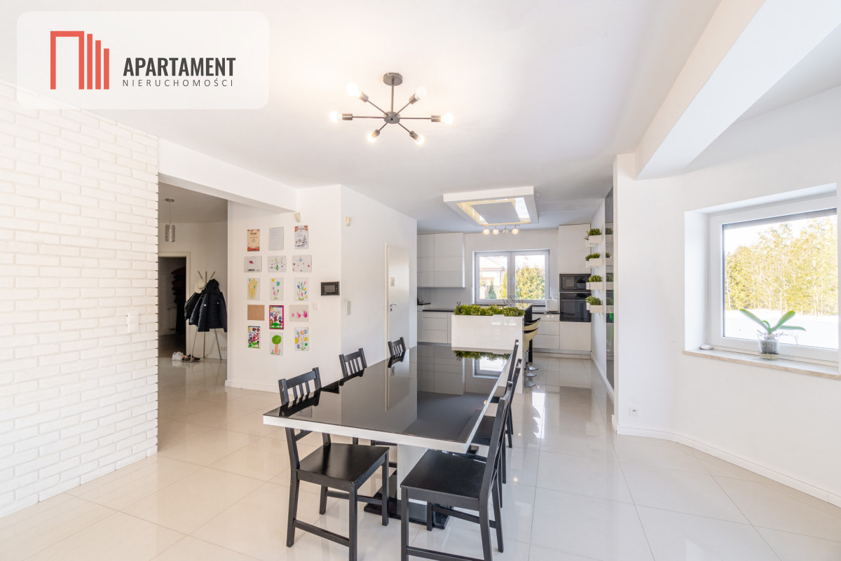 Do prac wykończeniowych użyto materiałów wysokiej klasy - blaty w kuchni i schody na piętro wykonano z granitu i balustrada szklana. Połączenie klasycznej bryły budynku z nowoczesnym wnętrzem dobrze naświetlonym daje bardzo przyjemne odczucie estetyczne. Budynek świeżo otynkowany, dachówka ceramiczna - rolety zewnętrzne sterowane mechanicznie. Gaz miejski-piec dwufunkcyjny - ogrzewanie podłogowe.