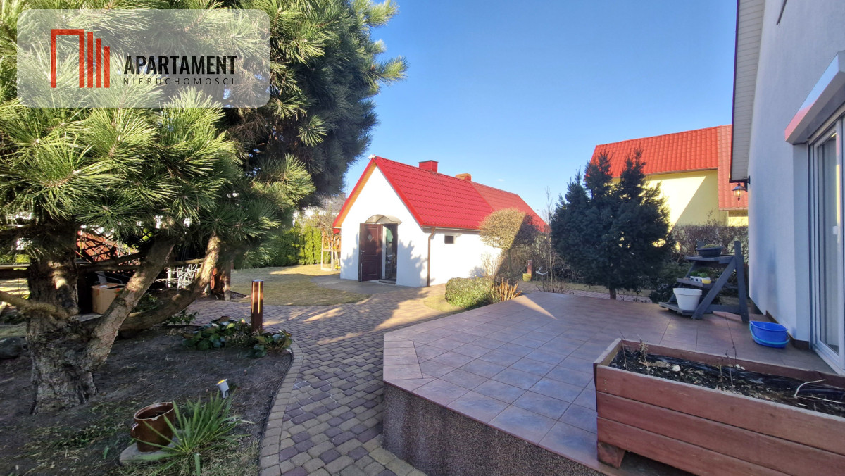 Działka o powierzchni 729 m² jest w pełni zagospodarowana i zaprojektowana z myślą o wygodzie mieszkańców. Znajduje się tu przestrzeń do wypoczynku, spotkań rodzinnych oraz rekreacji.